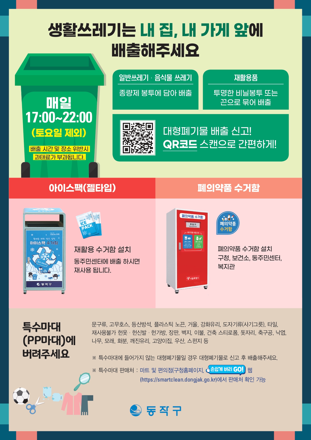 ※ 평상시 배출 시간 : 토요일 제외 매일 17시 ~ 22시 , 내 집(상가) 문앞