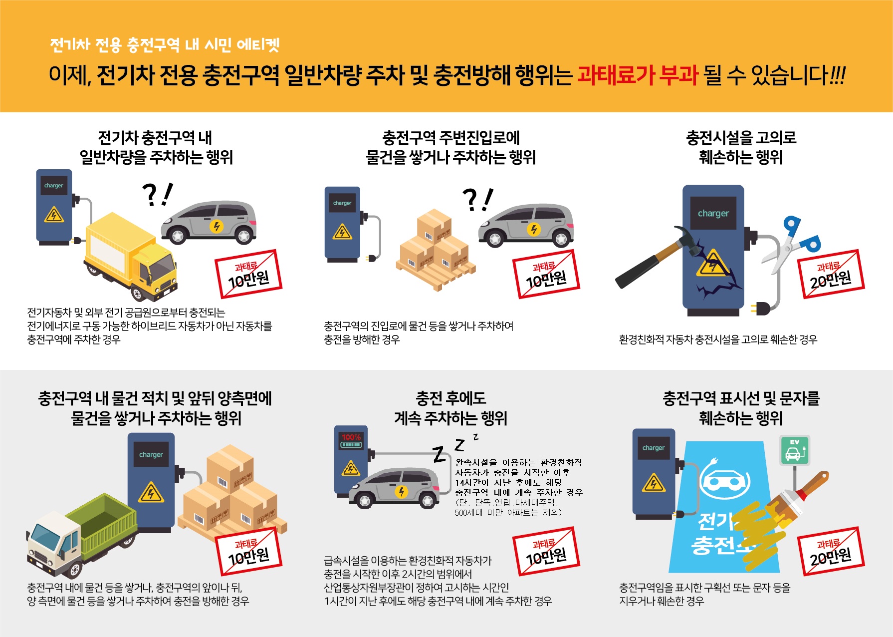 동작구 관내 전기차 충전구역 내 시민 에티켓(불법행위 과태료 부과)