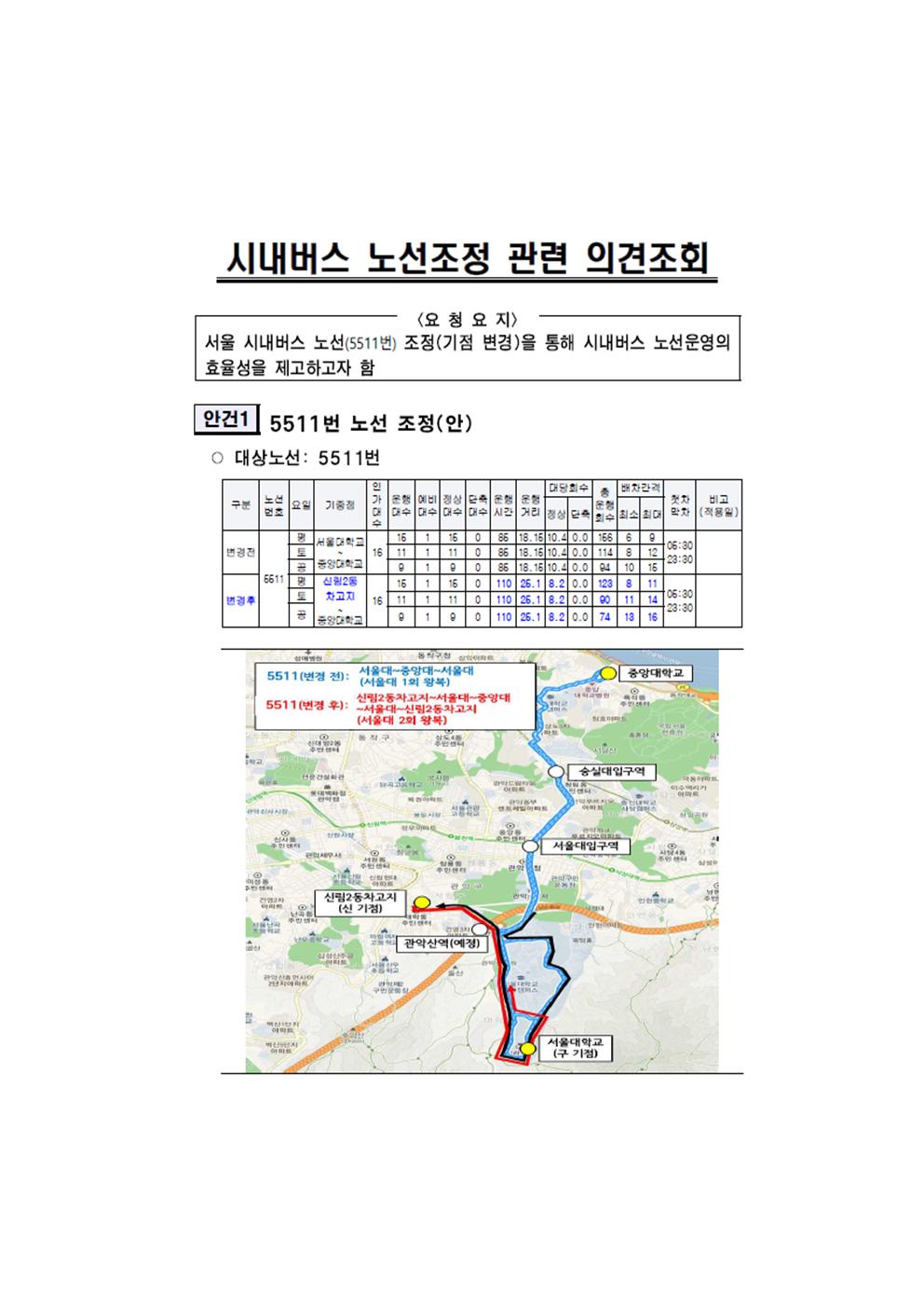 5511번 시내버스 노선조정(안) 의견조회