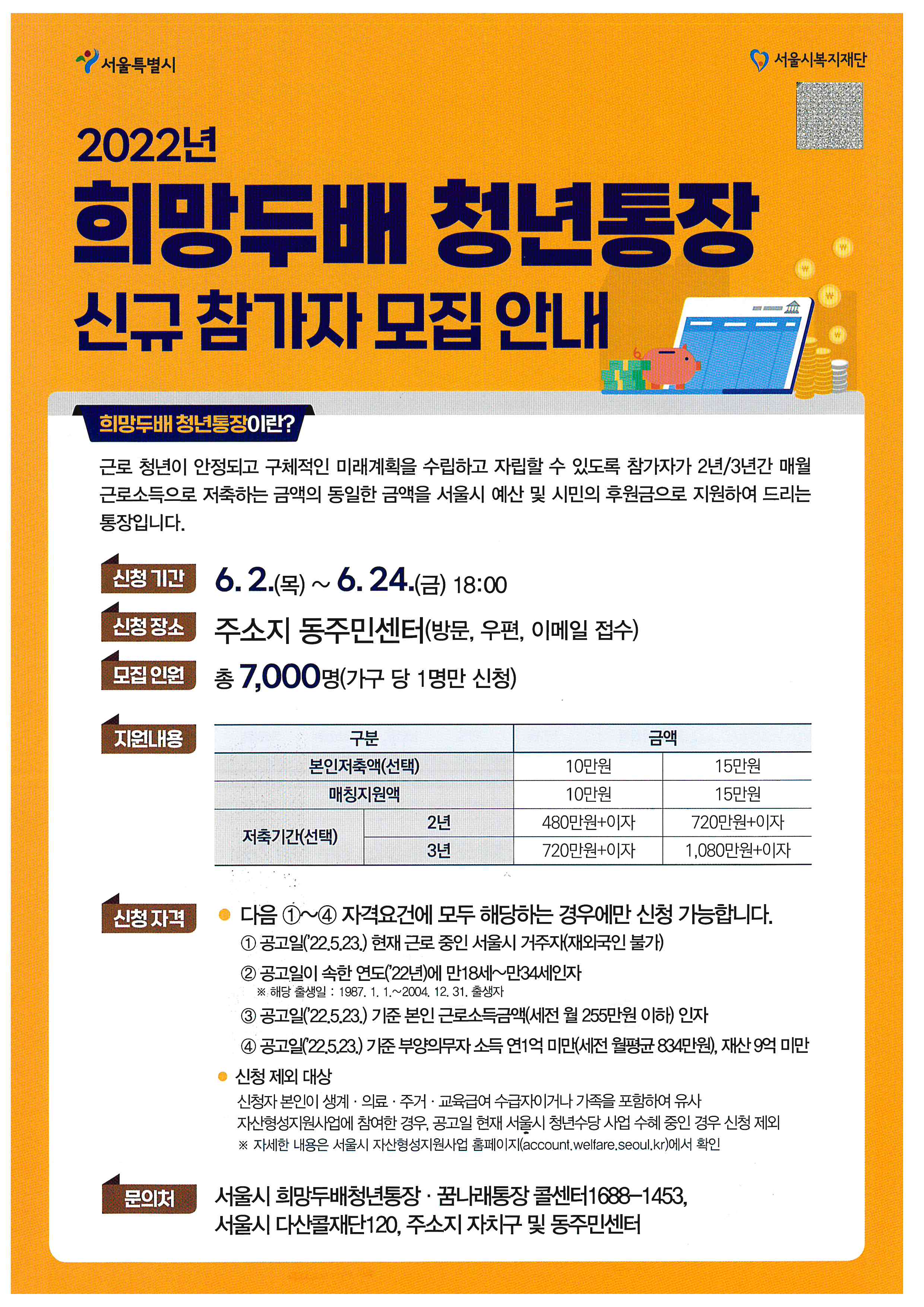 2022년 희망두배 청년통장 참여자 모집 안내★