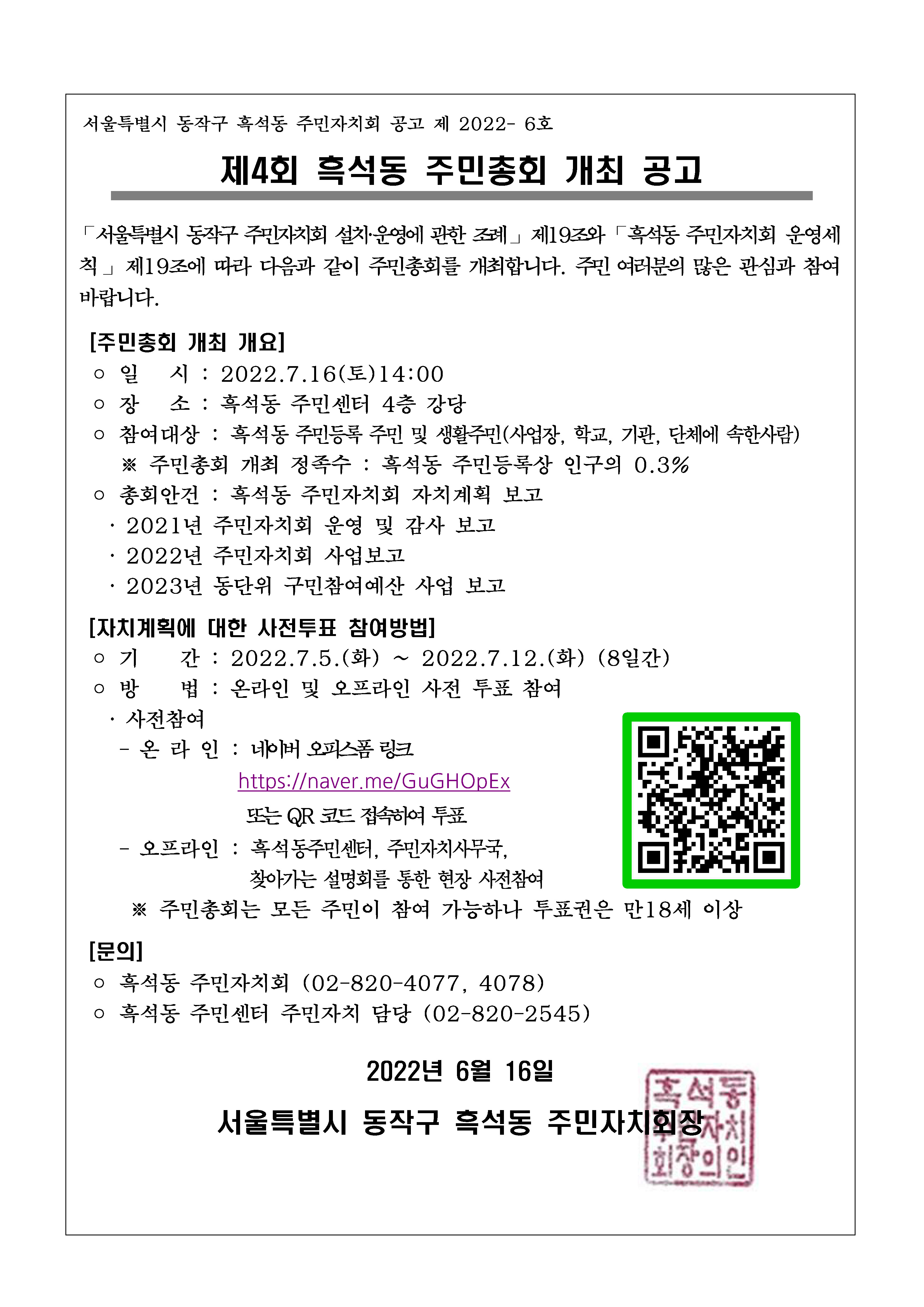 제4회 흑석동 주민총회 개최 공고