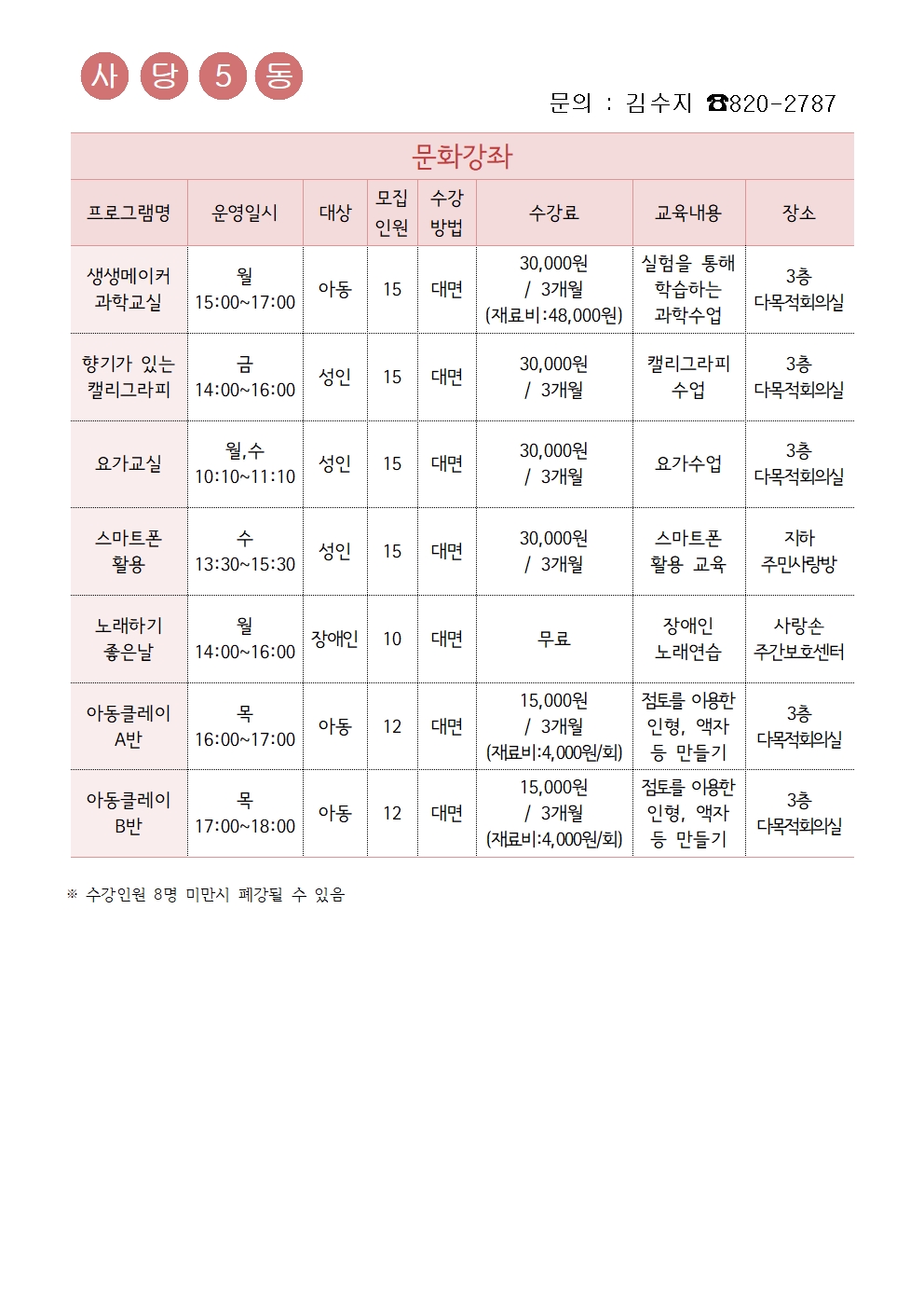 2022. 3기 사당5동 자치회관 프로그램 접수 안내