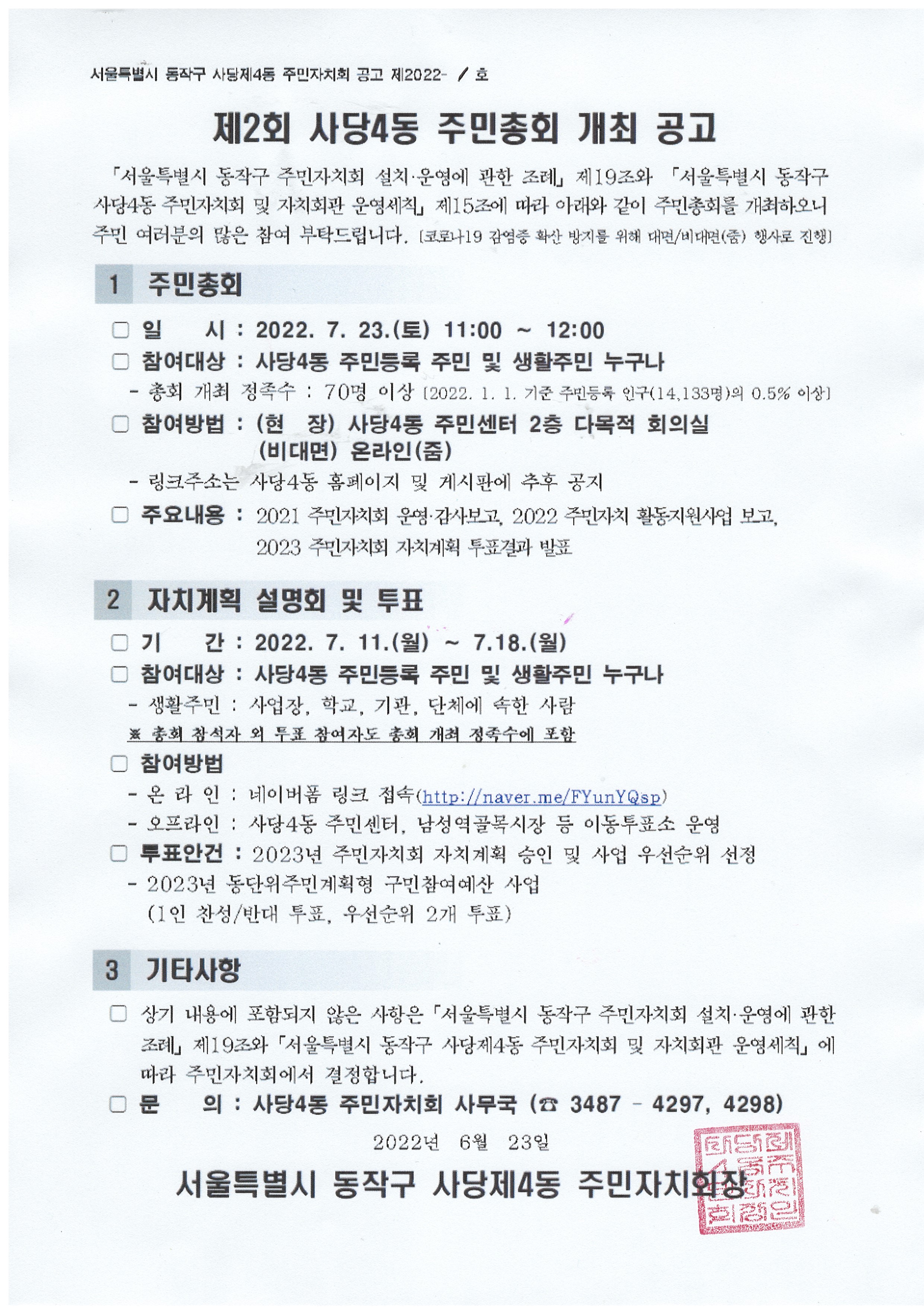 제2회 사당4동 주민총회 공고
