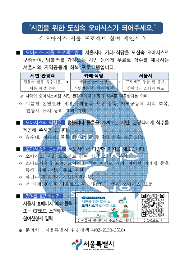 시민을 위한 도심속 오아시스가 되어주세요. -오아시스 서울프로젝트-