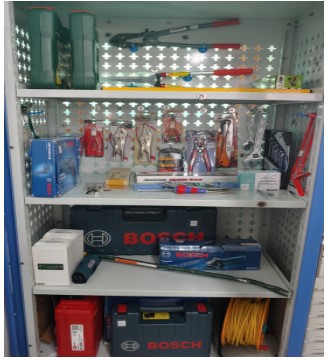 스패너 100mm 1, 스패너 200mm 1, 스패너 300mm 1, 스패너 450mm 1, 전지가위 1, 그라인더1, 바이스플라이어1,