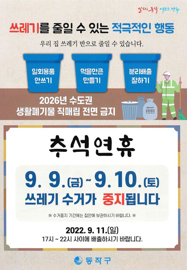 ◆ 수거중지 기간 : 2022. 9. 9.(금) ~ 9. 10.(토)