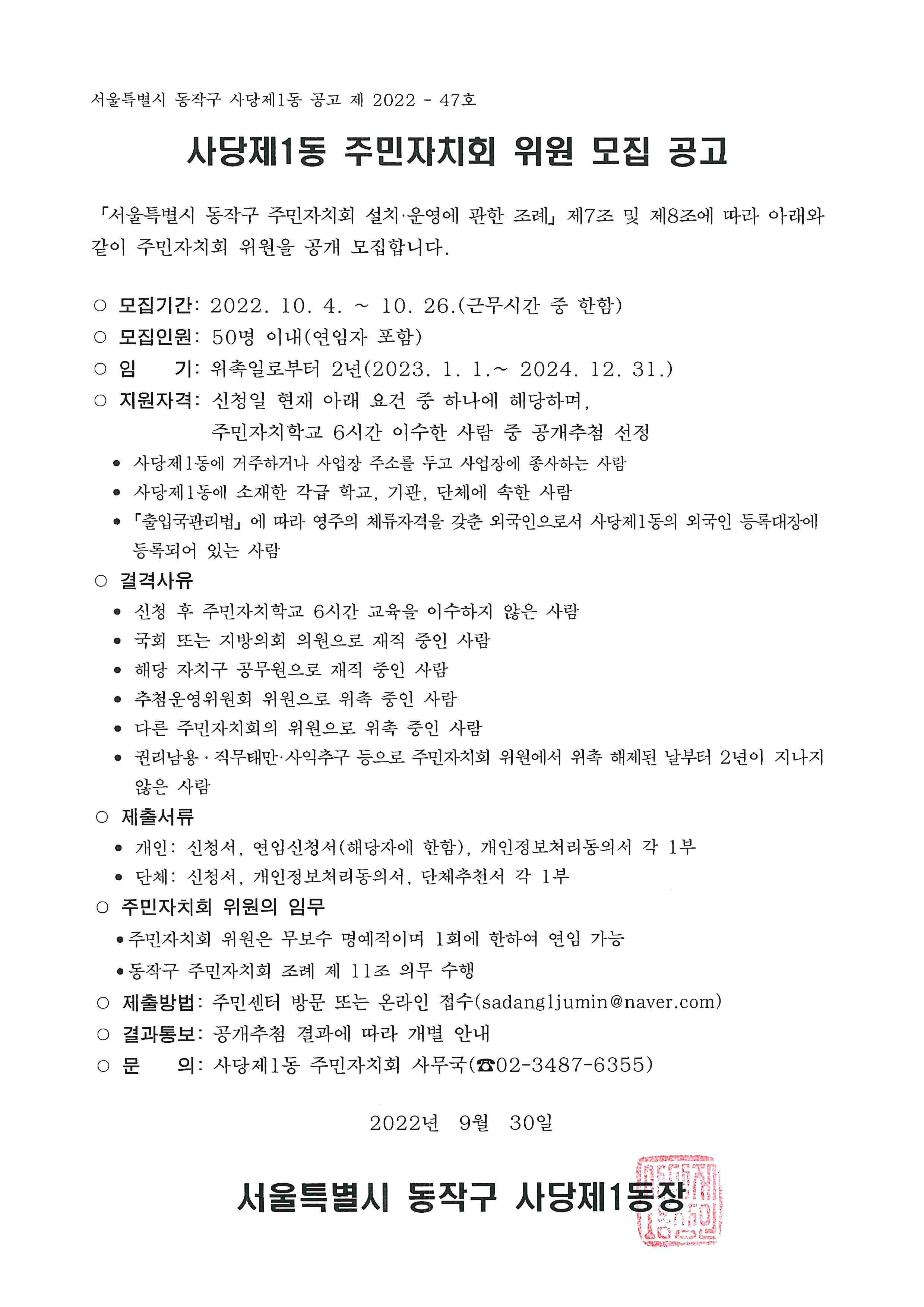주민자치회 위원 신청서 등 서식 각 1부.hwp