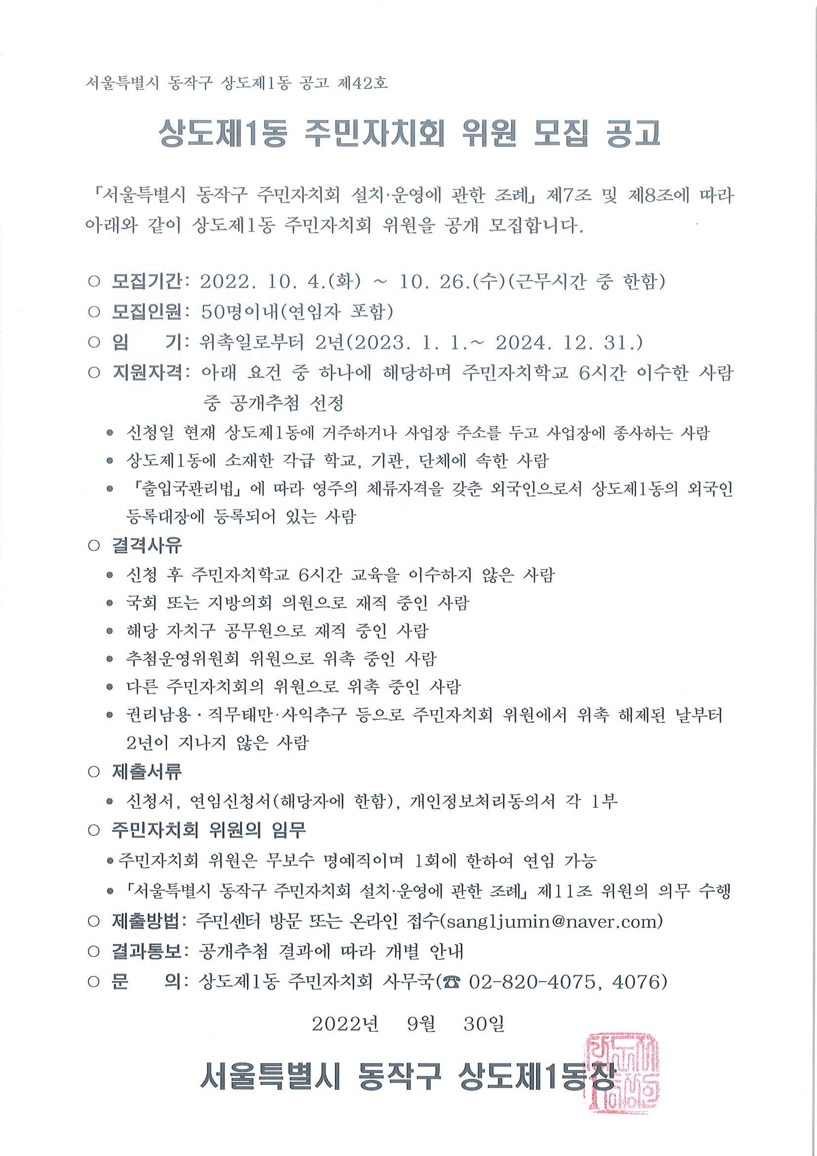 주민자치회 위원모집신청서(개인), 개인정보동의서 1부.hwp
