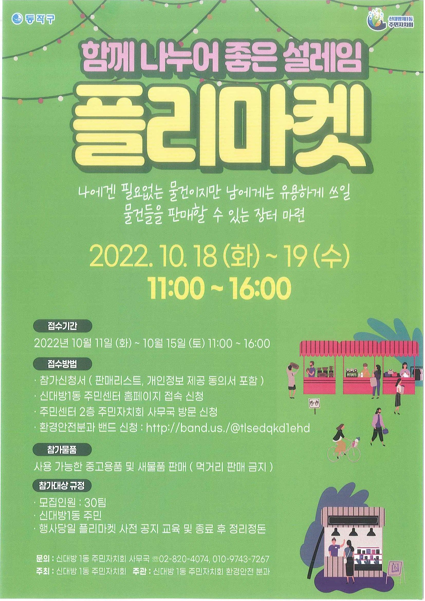 ♣ 신대방1동 주민자치회 「플리마켓」 접수 안내