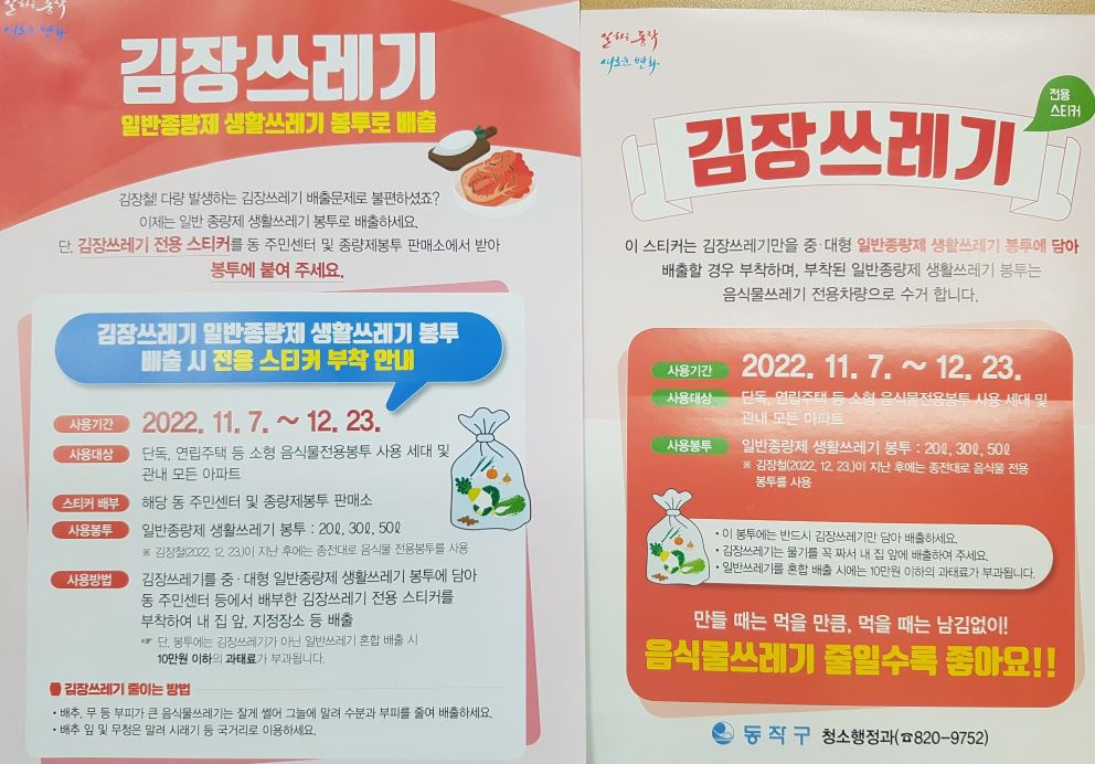 2. 배출방법 :김장쓰레기를 일반종량제봉투에 담아 김장쓰레기 전용스티커 부착 후 배출