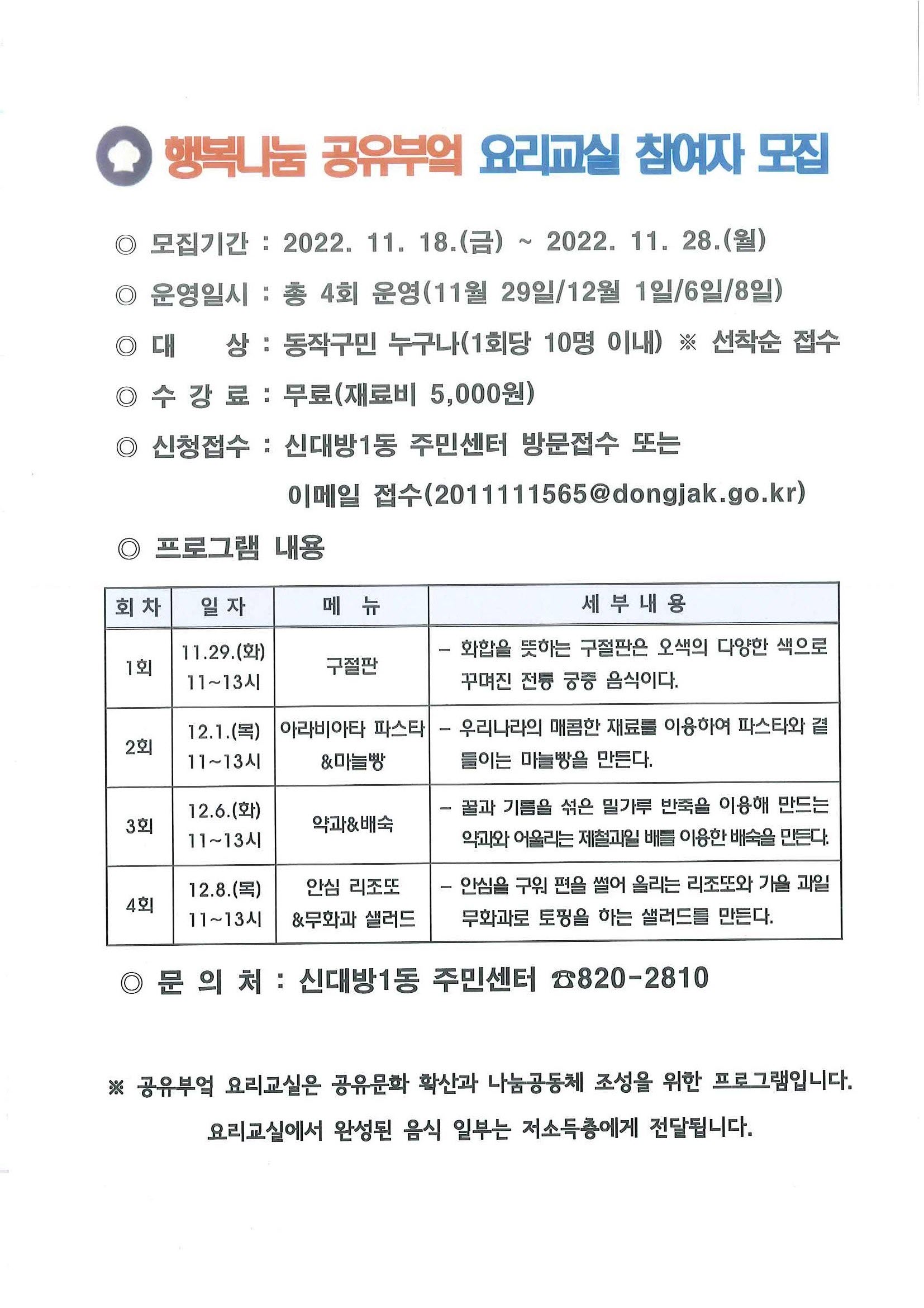 ◎ 문 의 처 : 신대방1동 주민센터 ☎820-2810