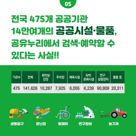 전국 475개 공공기관의 시설,물품을 국민과 함께 쓰는 공유누리 서비스