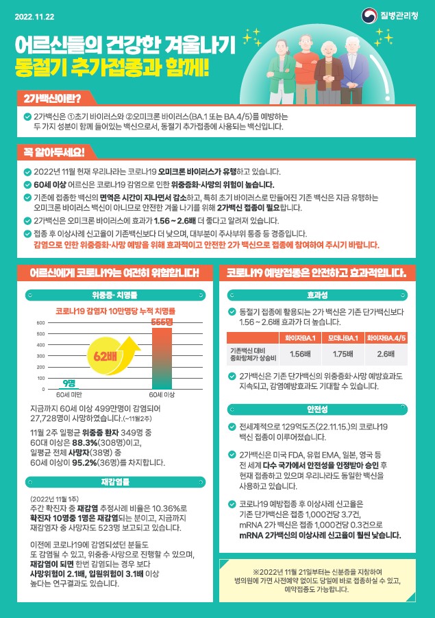 60세 이상 고령층 및 건강취약계층 대상 동절기 코로나19 추가접종 안내