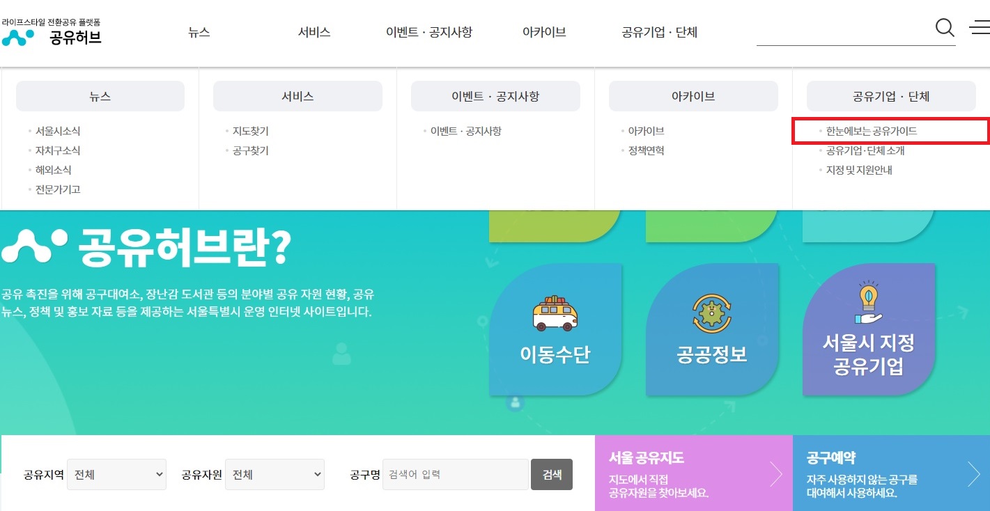 공공개방자원 공유플랫폼 공유허브 이용안내