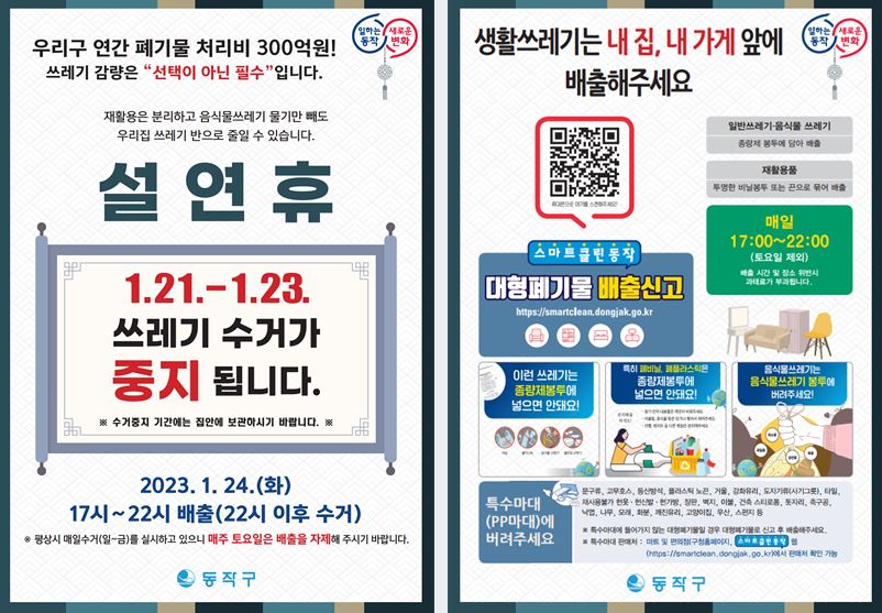 2023. 설 연휴 쓰레기 수거중지 기간[1.21(토)~1.23(월)] 안내