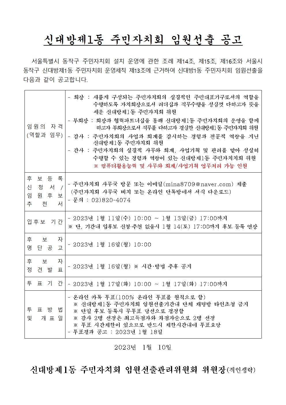 신대방1동 주민자치회 임원선출 신청서,추천서.hwp
