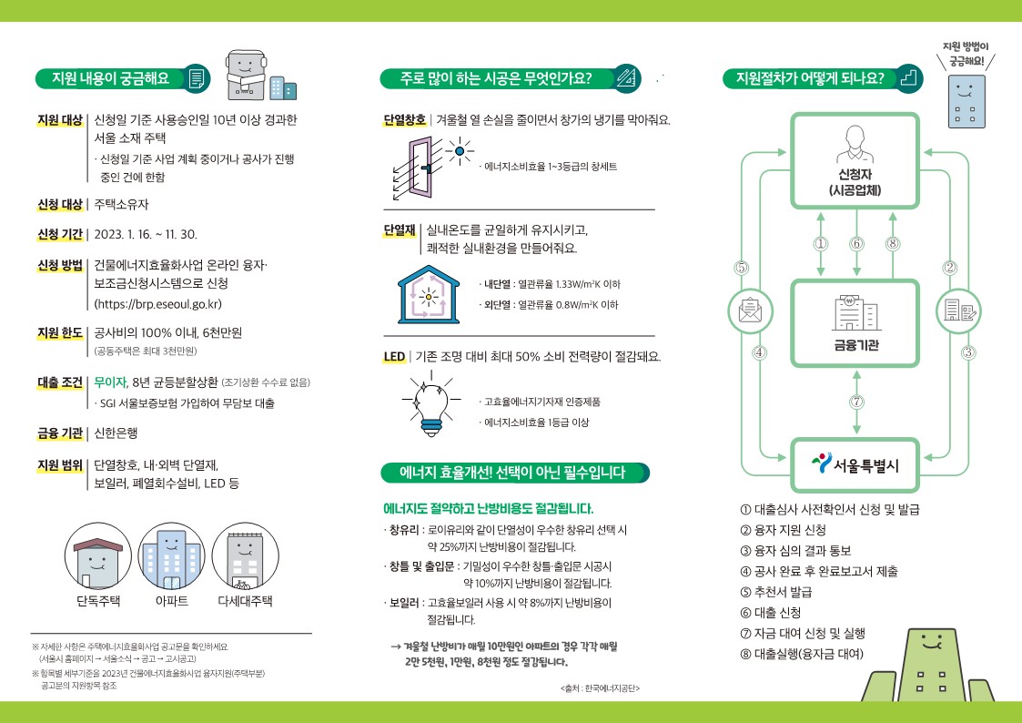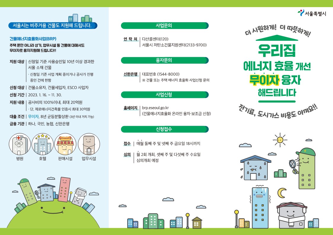 ※ 문의처 : 서울시 다산콜센터(☏120) 또는 서울시 저탄소건물지원센터(☏02-2133-9700)