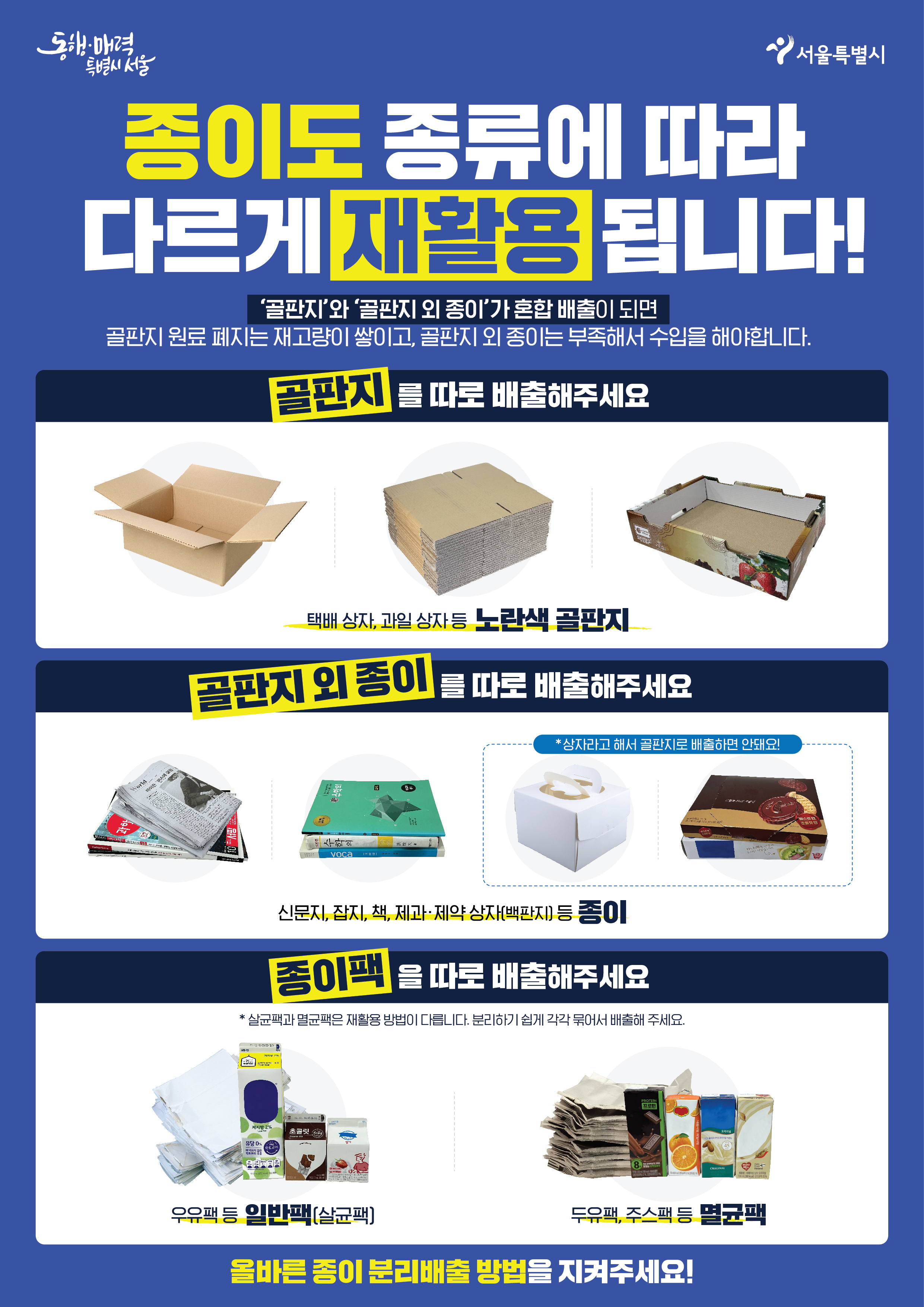 ▶ '골판지'(택배상자, 과일상자 등)와 *골판지 외 종이' 따로 배출