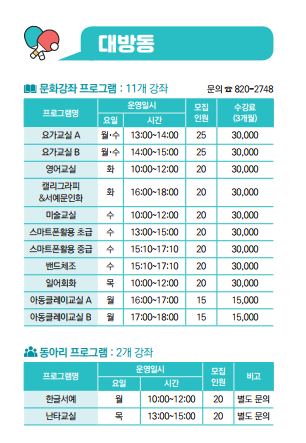 2023. 2분기 대방동 자치회관 프로그램 접수 안내