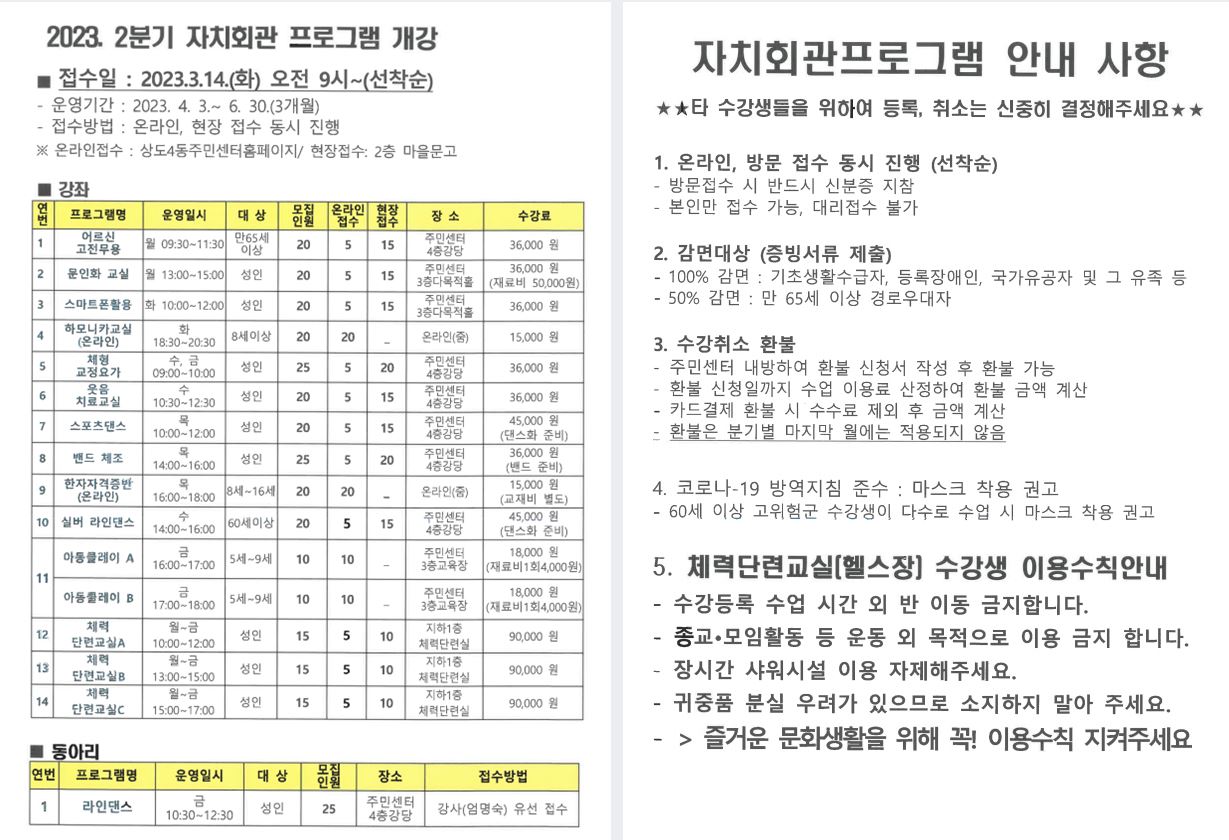 상도4동 2023. 2분기 자치회관 프로그램 접수 안내
