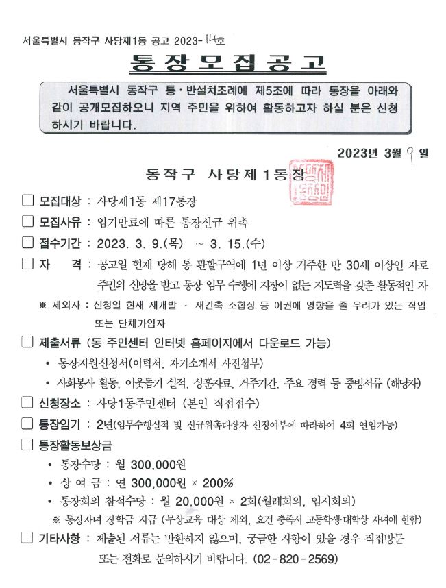 통장 모집 재공고(17통)