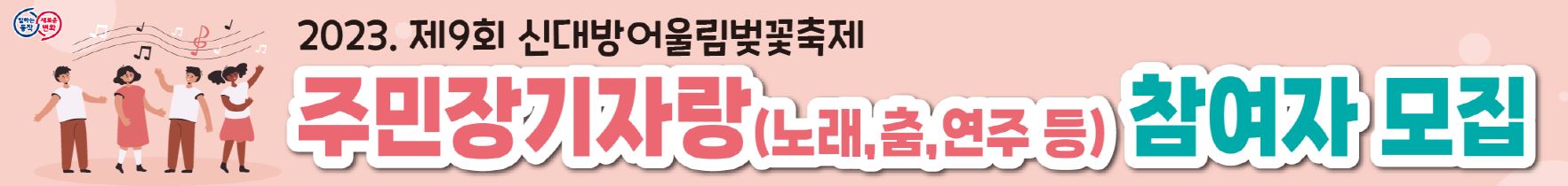 제9회 신대방어울림벚꽃축제 <주민장기자랑>참여자를 아래와 같이 모집합니다.