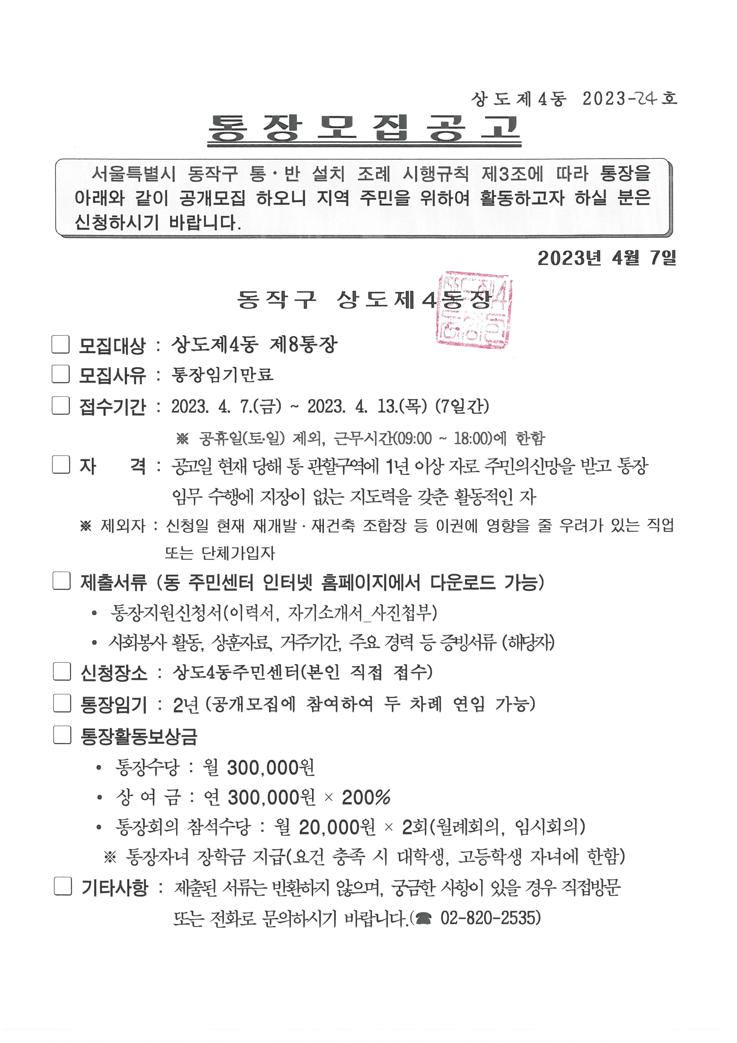 통장 공개모집 공고(8통)