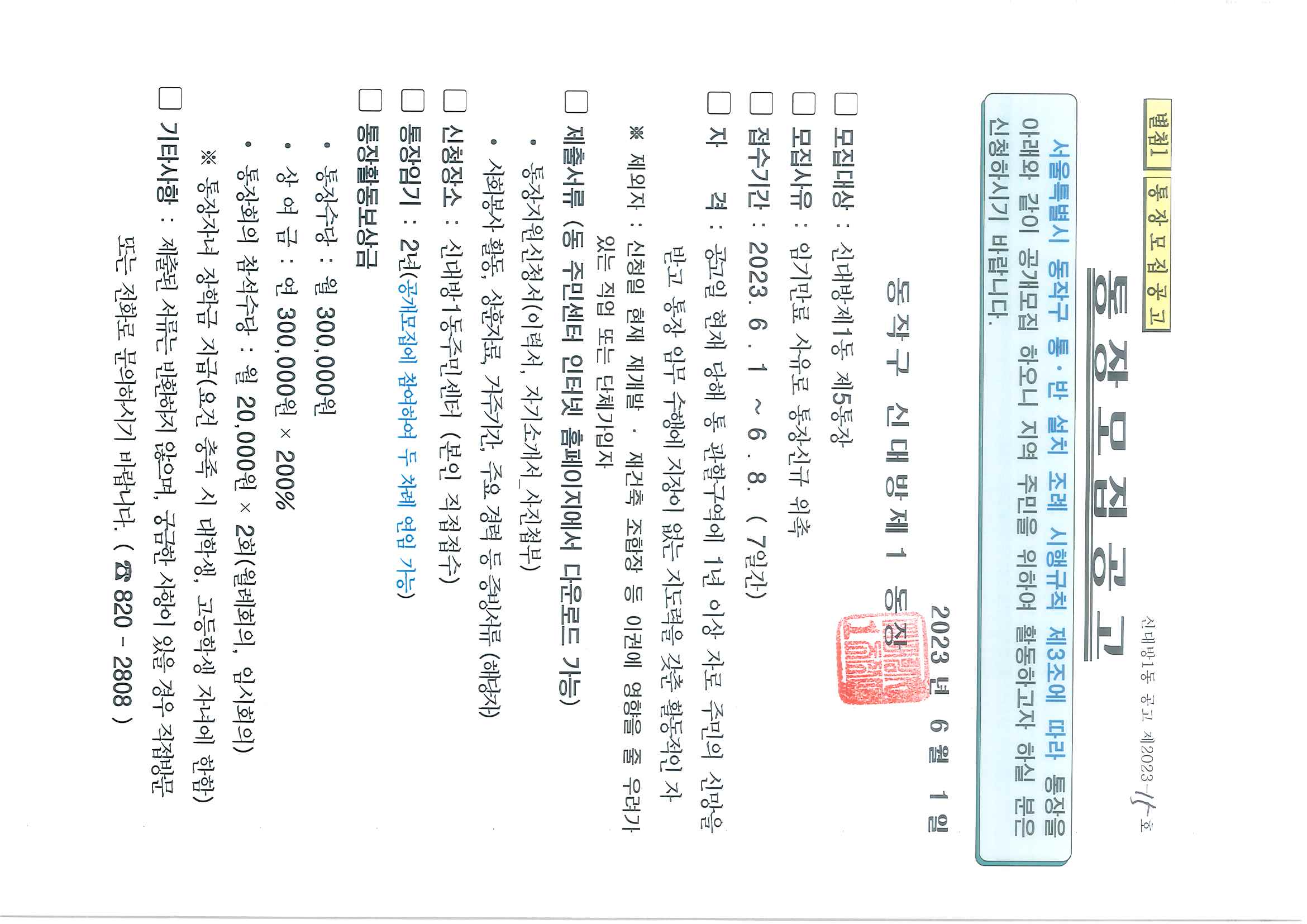 통장 공개 모집 공고