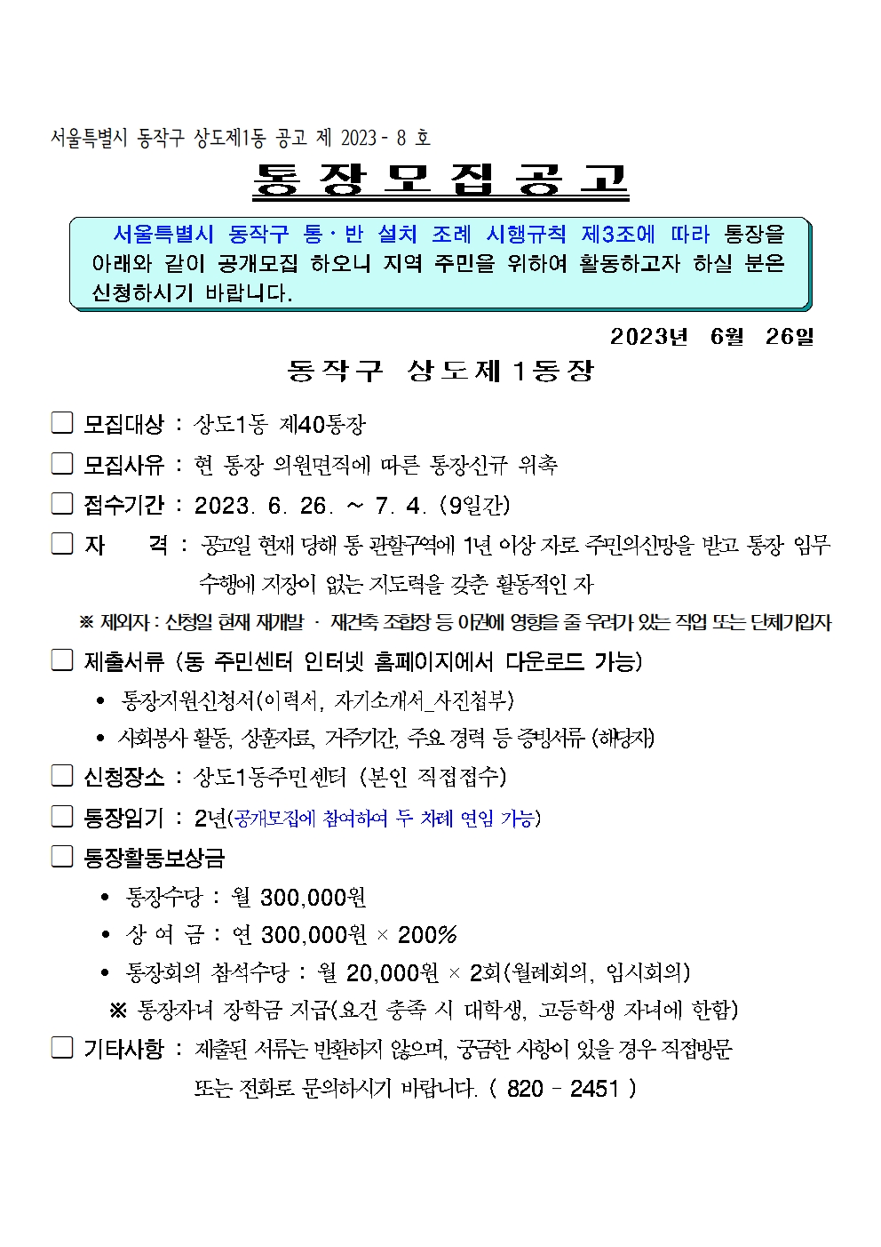 - 40통 : 상도로 346-1(힐스테이트 상도 센트럴파크) 103동, 104동, 105동, 106동, 107동