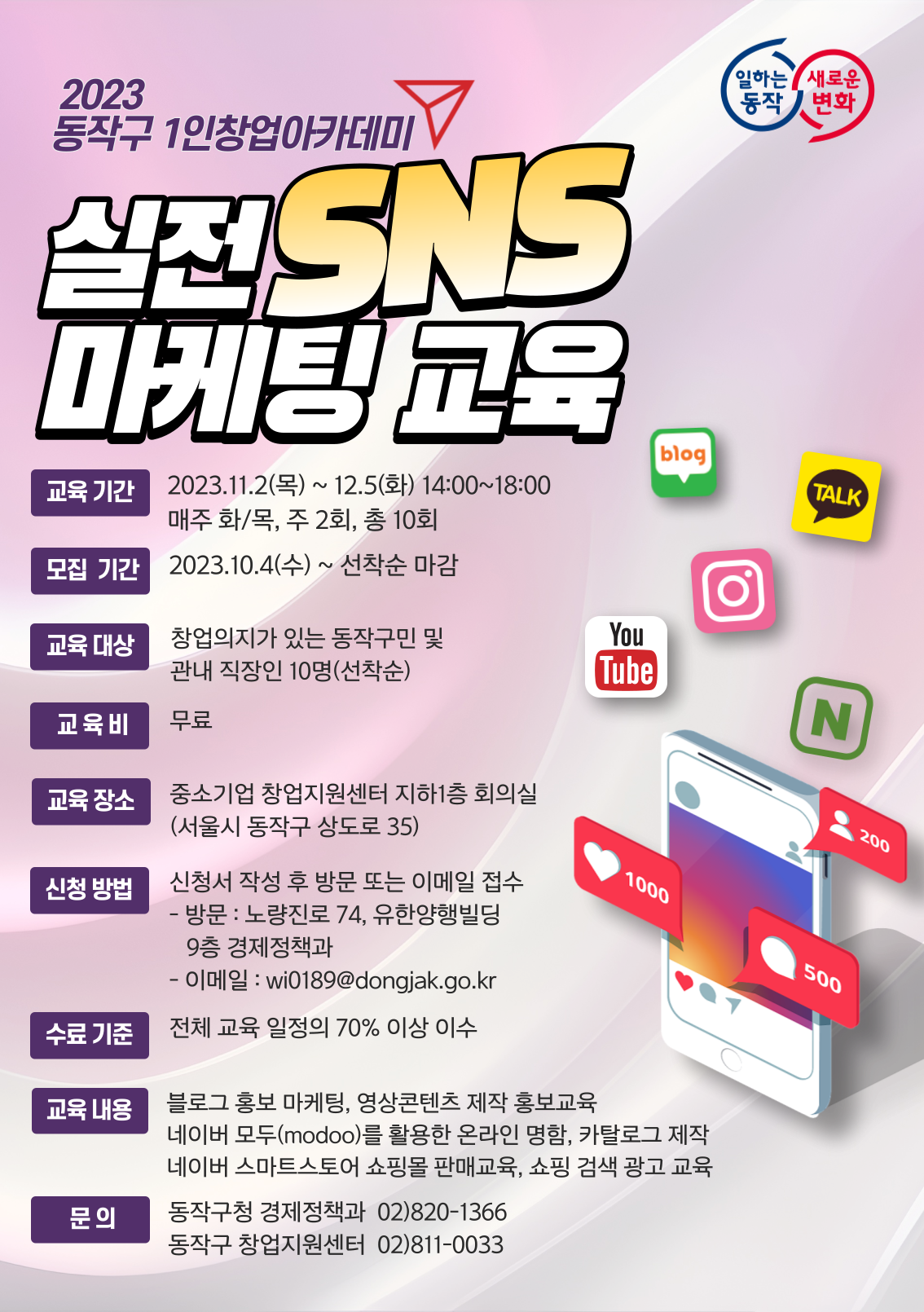 1인 창업아카데미 실전 SNS마케팅 교육생 모집 안내