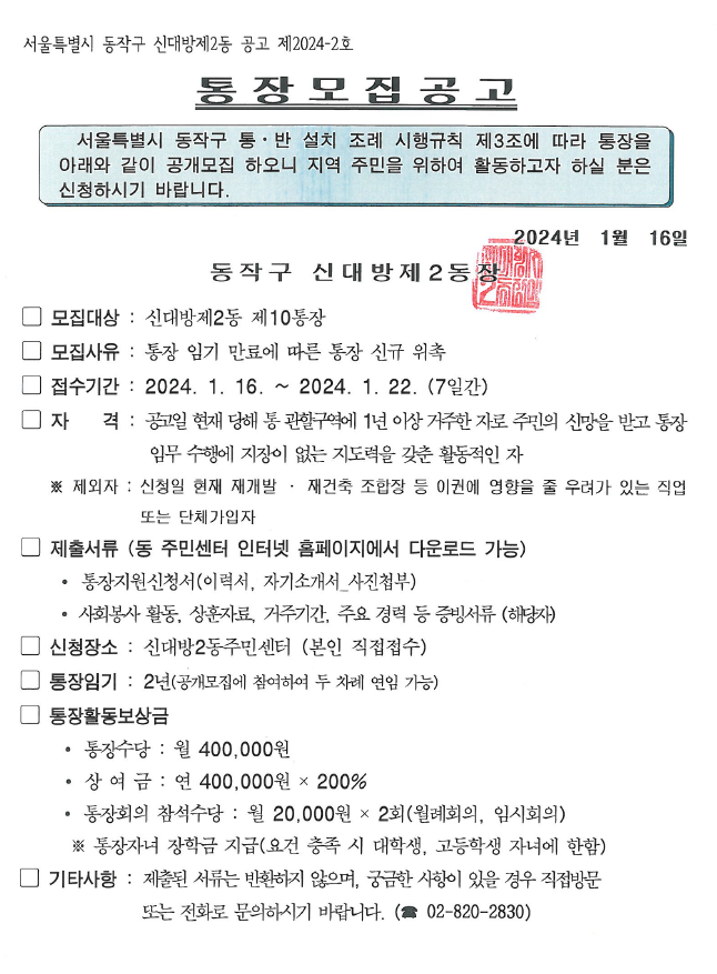 통장 공개 모집 공고(10통)