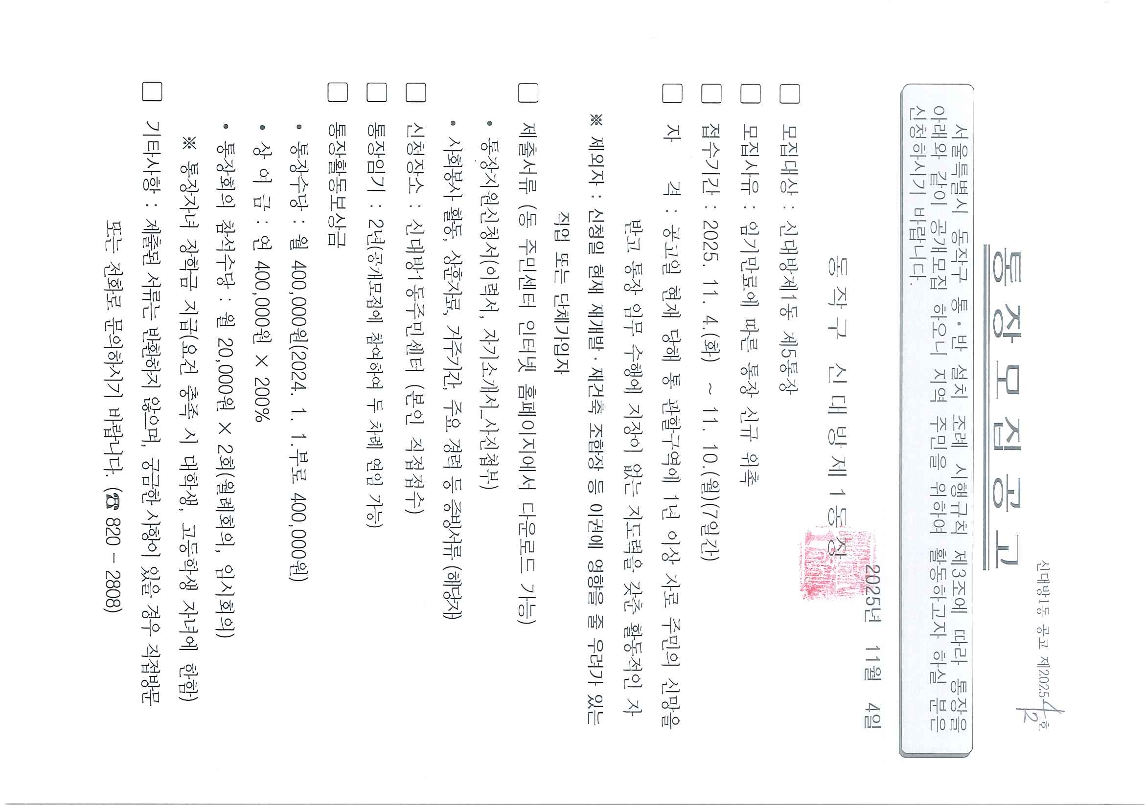 통장 공개모집 재공고(5통)