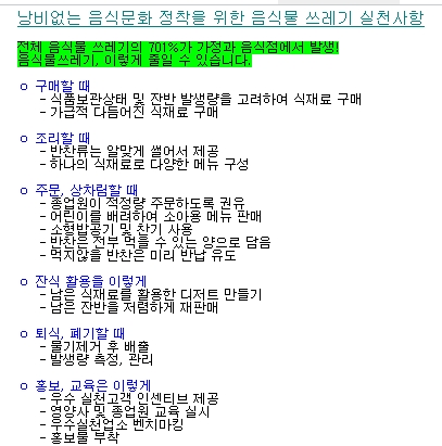 낭비없는 음식문화 정착을 위한 음식물 쓰레기 실천사항