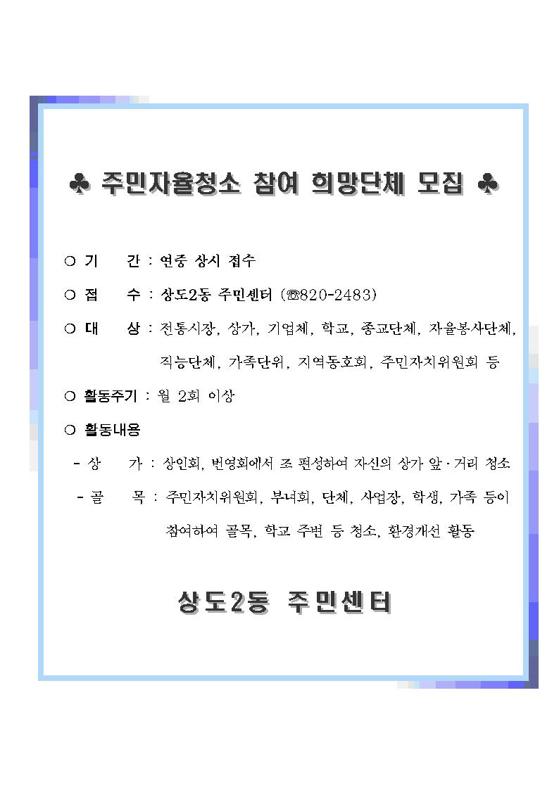 주민자율청소 참여 희망단체 모집