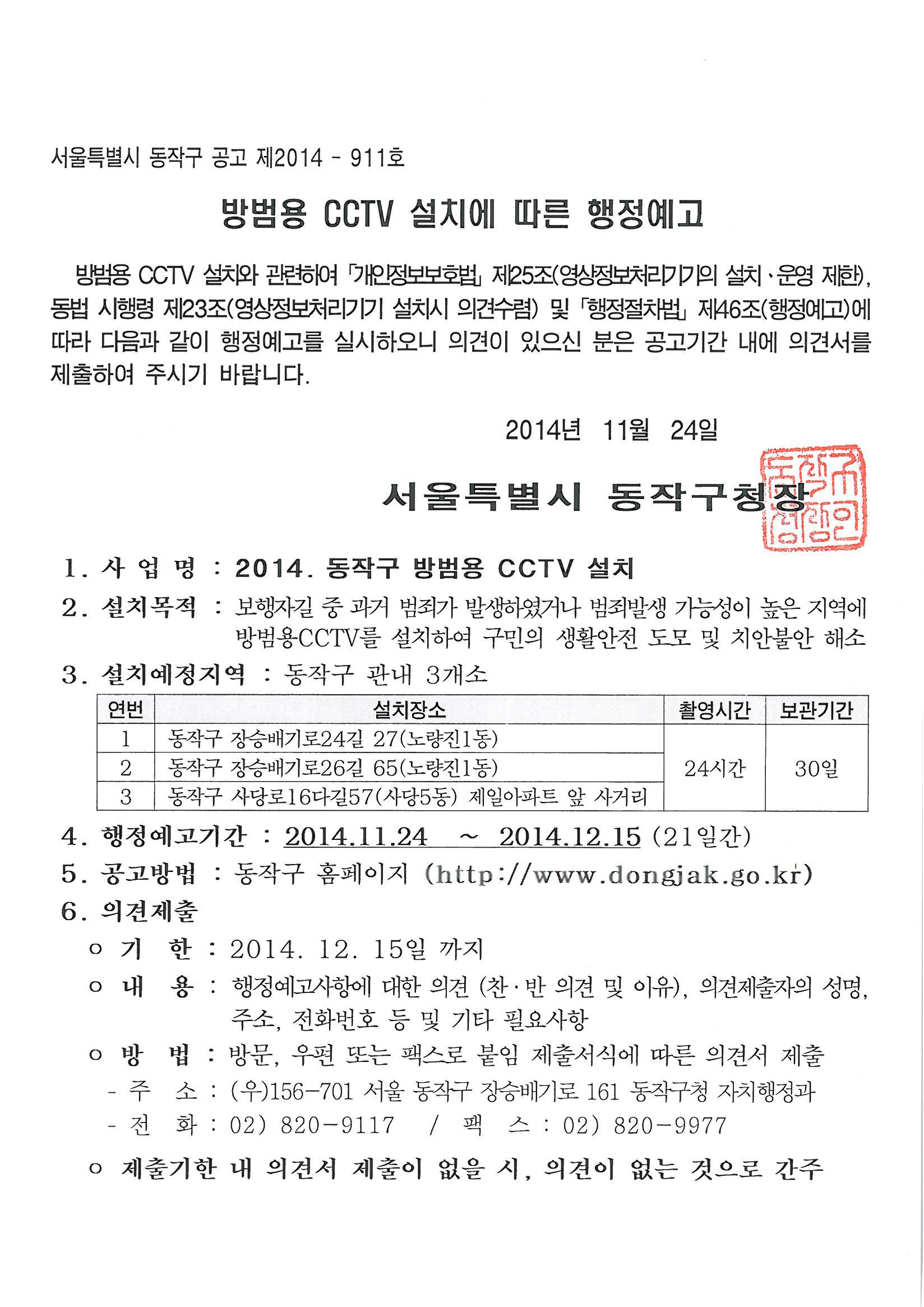 CCtv 설치에 따른 행정예고