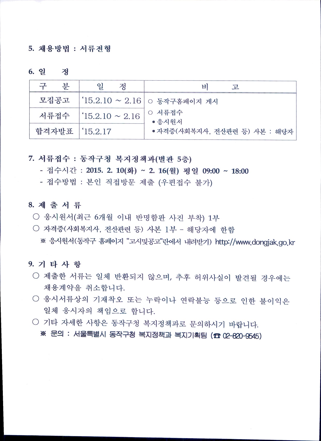 초,중,고 교육비 지원사업 동 임시인력 채용 공고