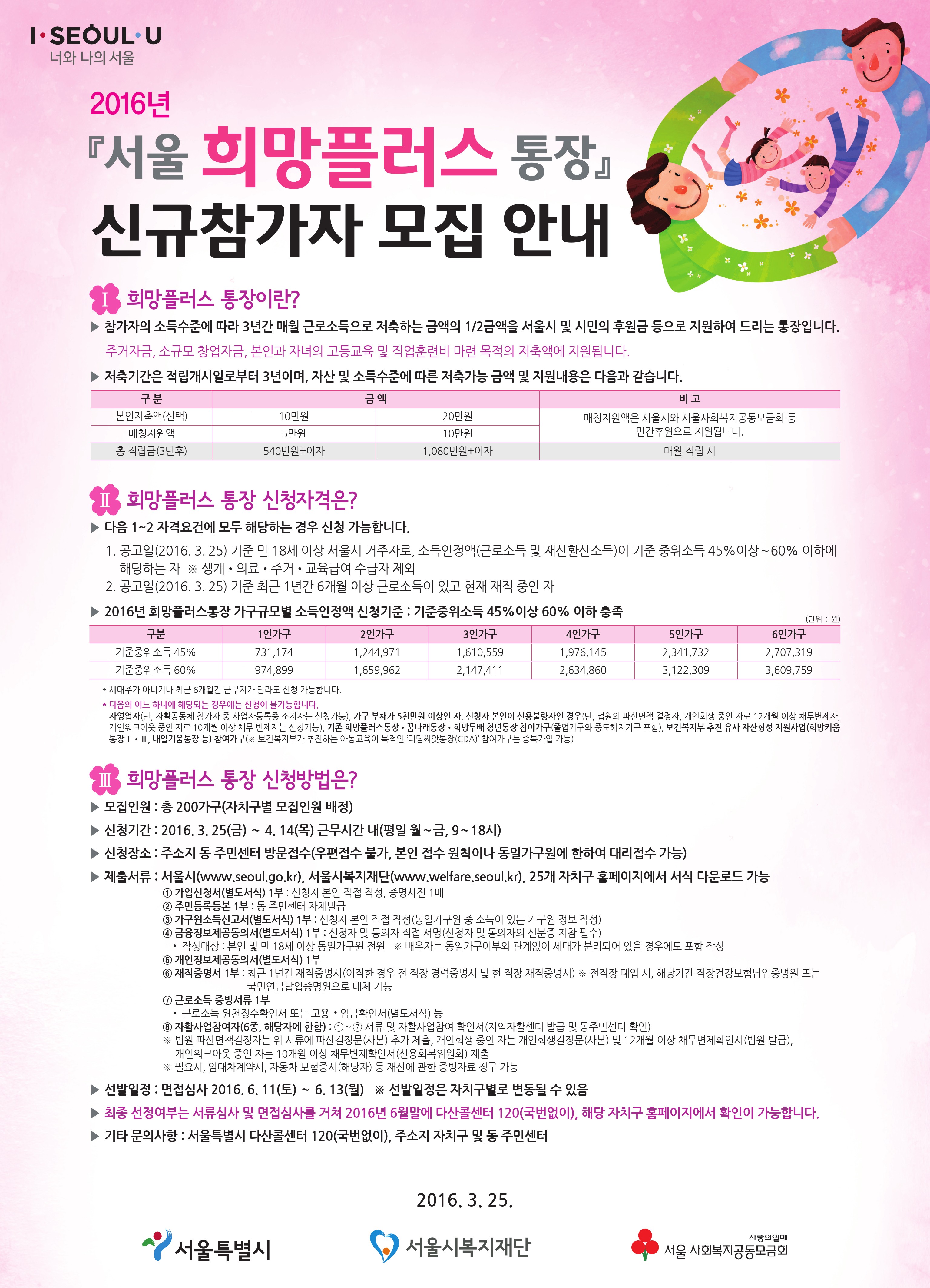 <희망플러스·꿈나래·청년두배통장 신규참가자 모집 공고>