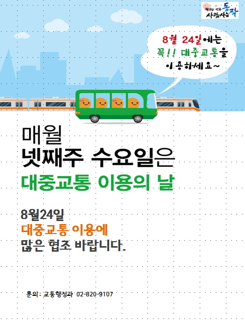 매월 넷째주 수요일은 대중교통 이용의 날입니다.