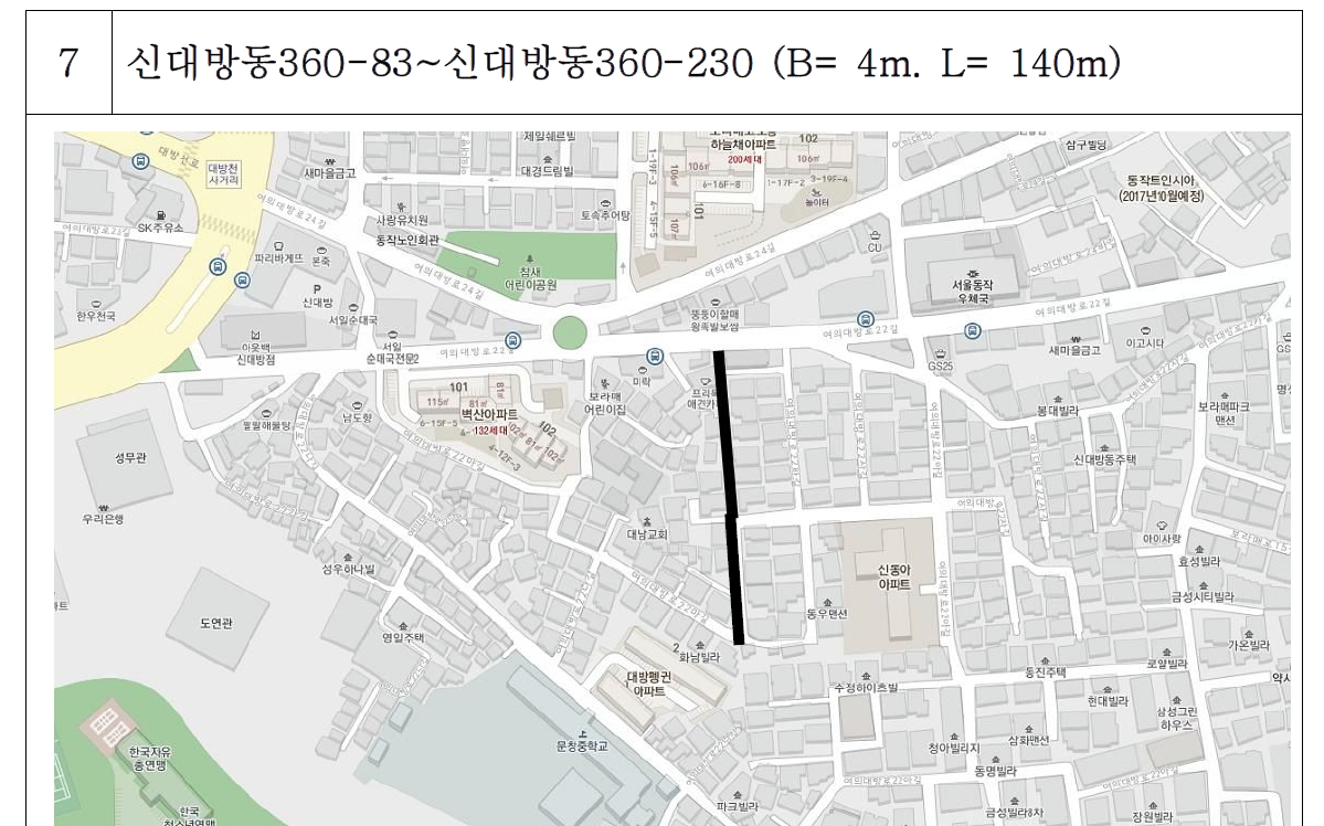 신대방2동 360-83 외 우리구 관내 불량도로 8곳에 대하여