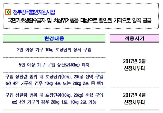 2017년 정부양곡할인지원사업 변경사항 적용 안내