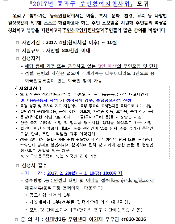 2017년 동작구 주민참여지원사업 모집
