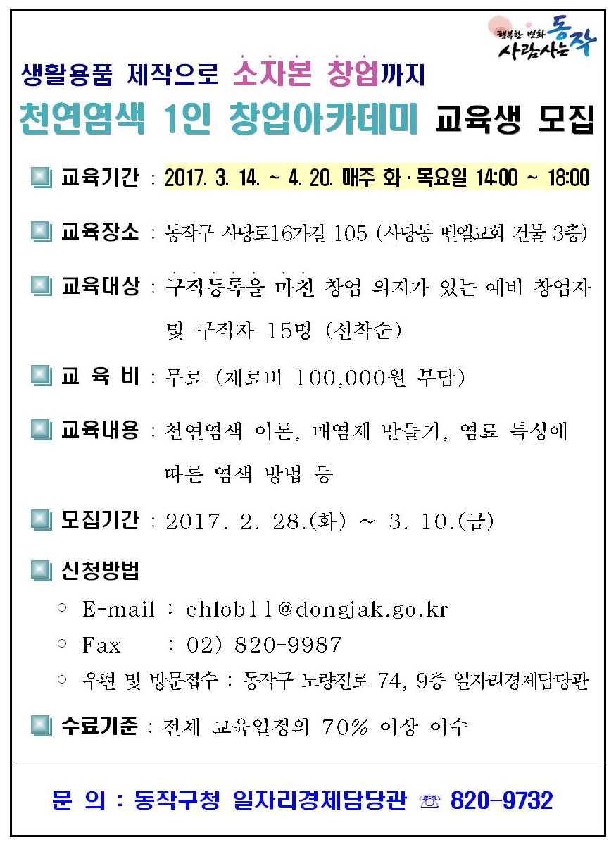 2017 천연염색 1인 창업아카데미 교육생 모집