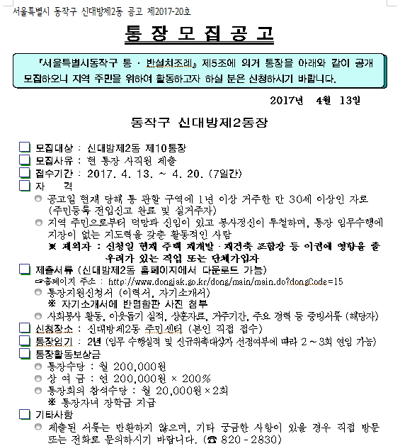 신대방2동 통장모집 공고(10통)