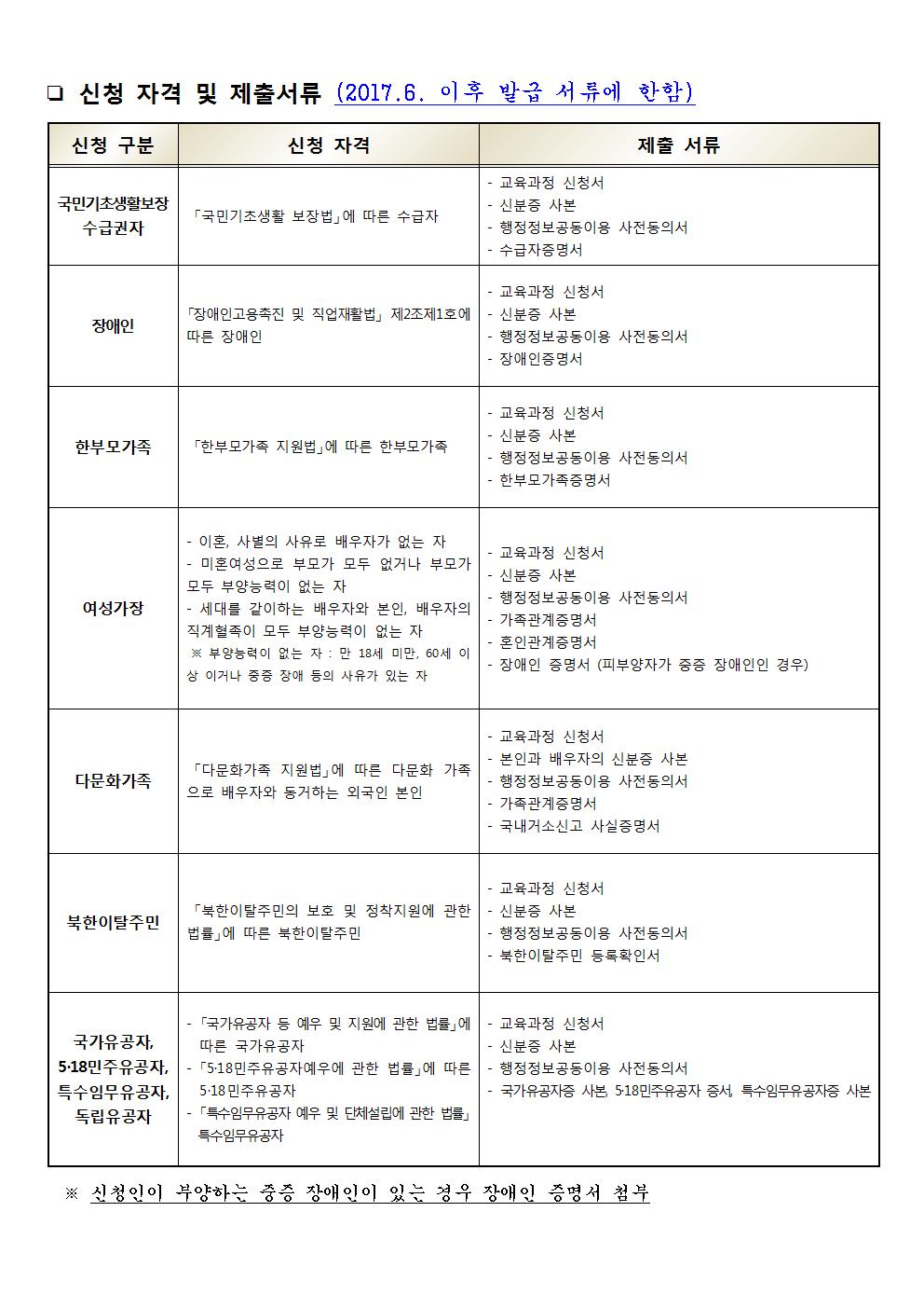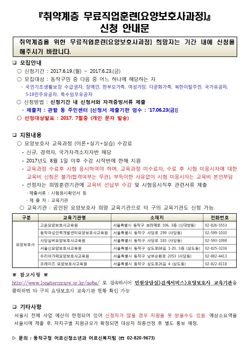 취약계층을 위한 무료직업훈련 (요양보호사과정) 안내