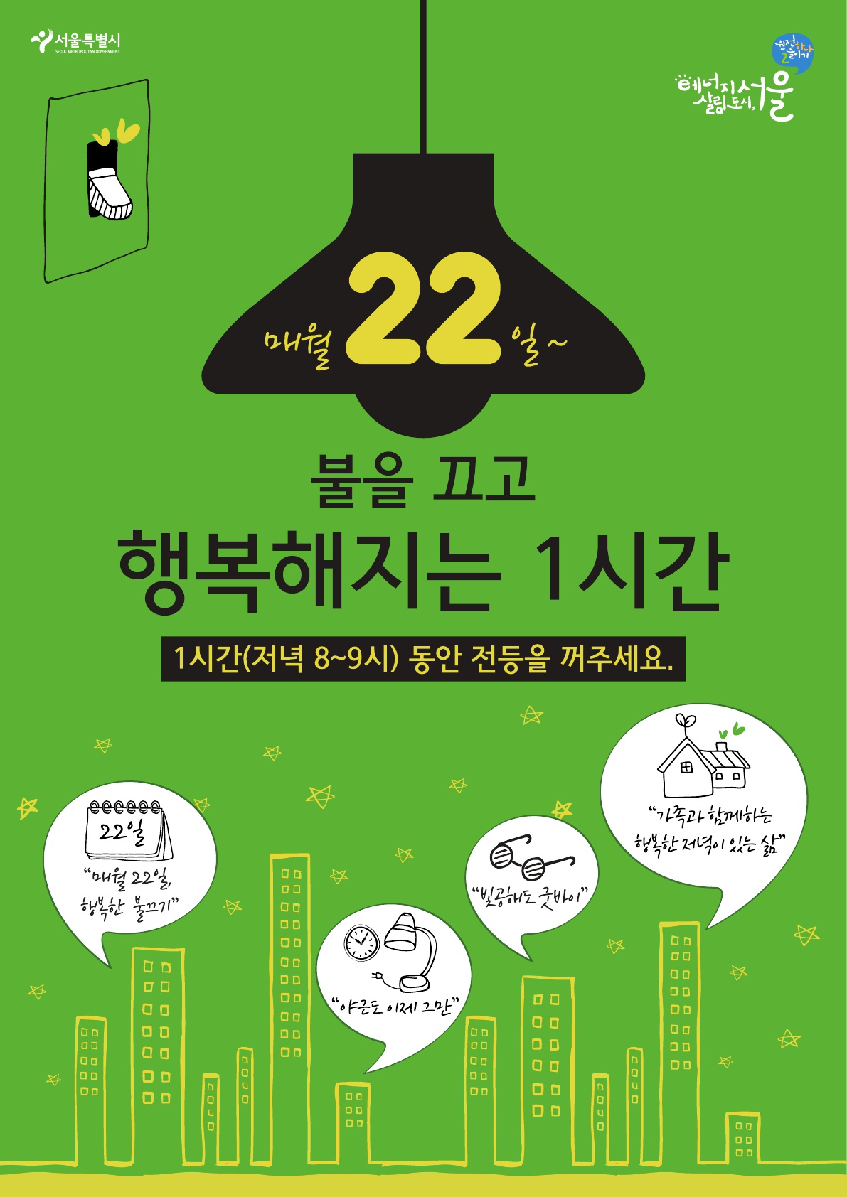매월 22일 저녁 1시간(20시 ~ 21시) 전등을 소등하는