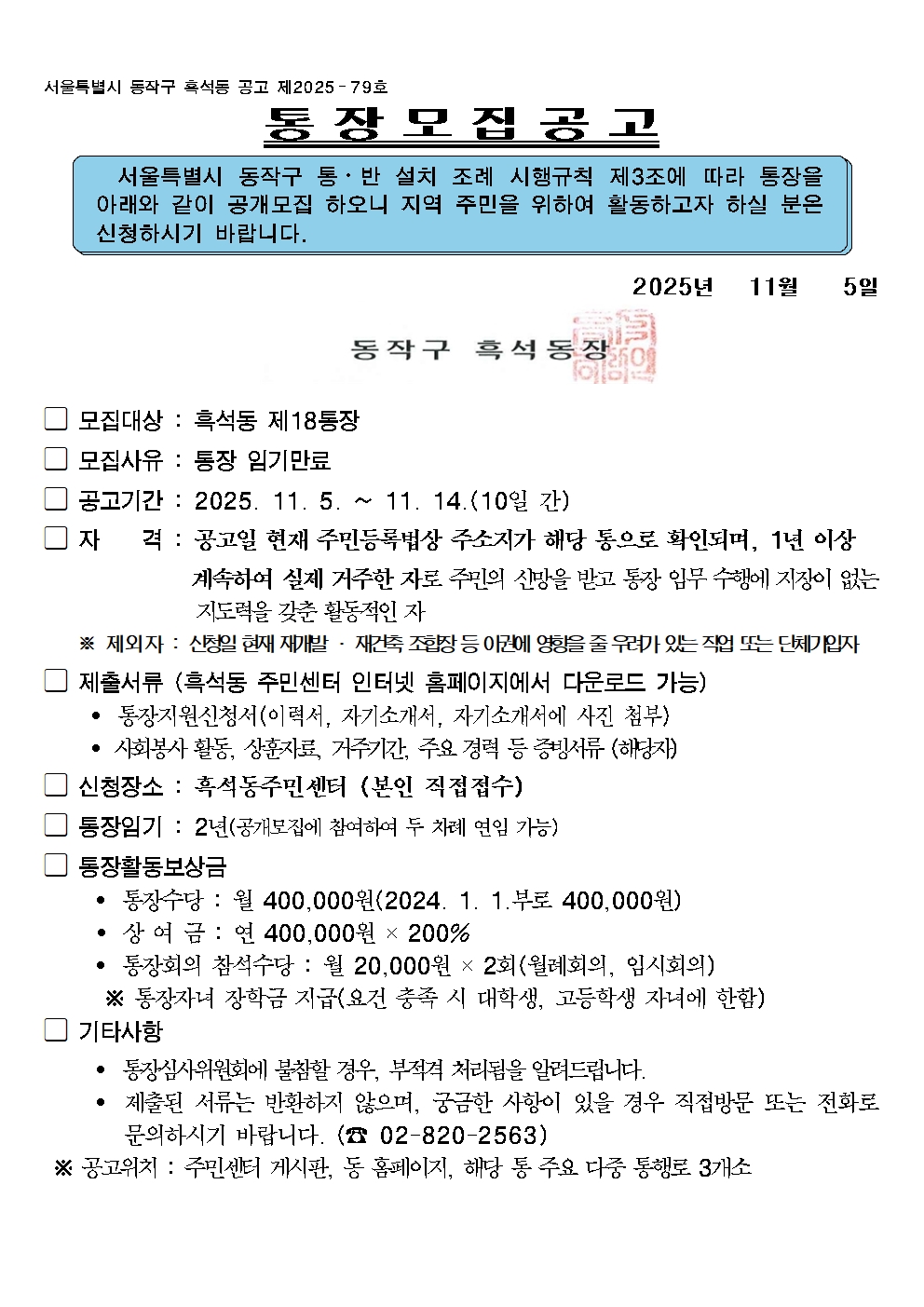 통장 공개모집 공고(18통)