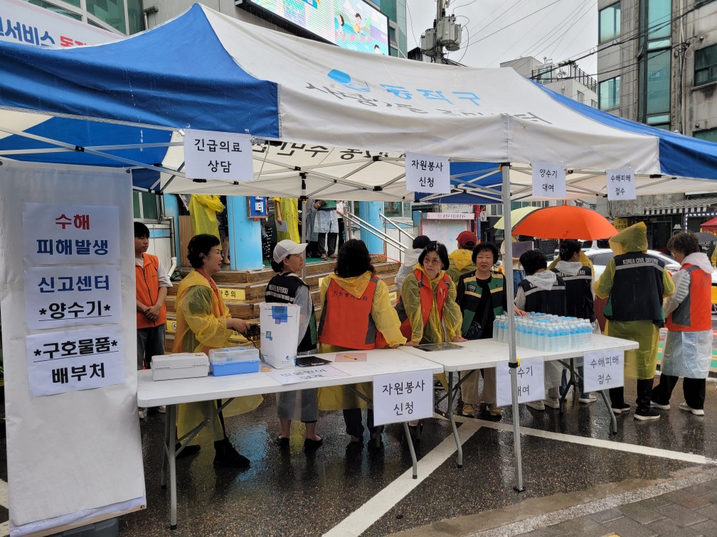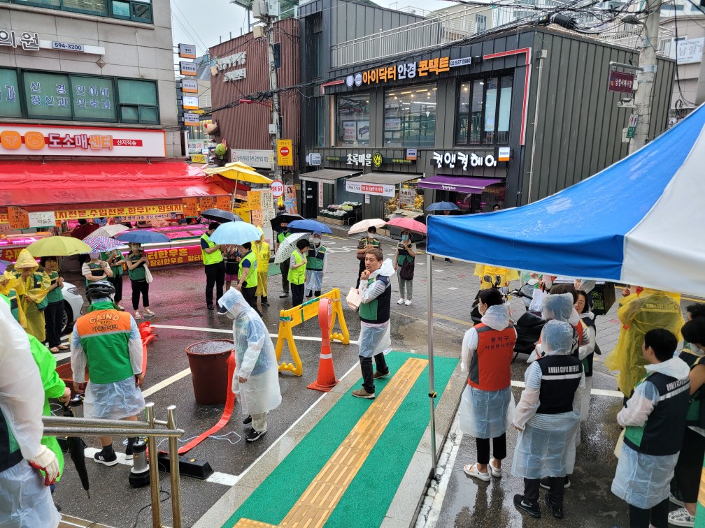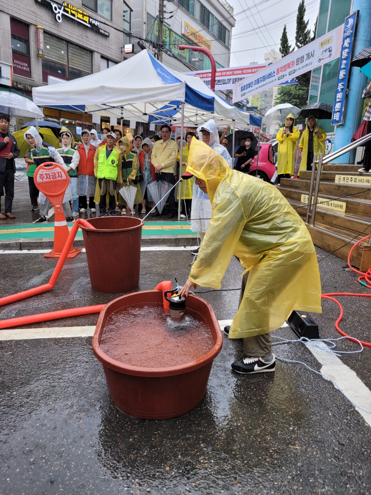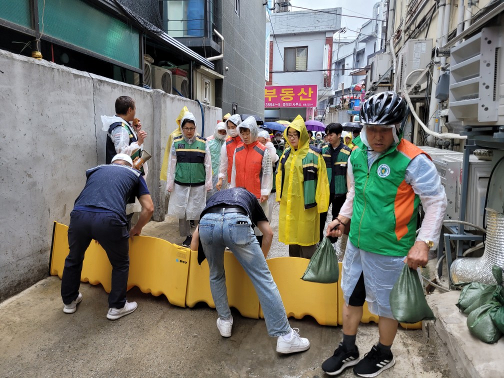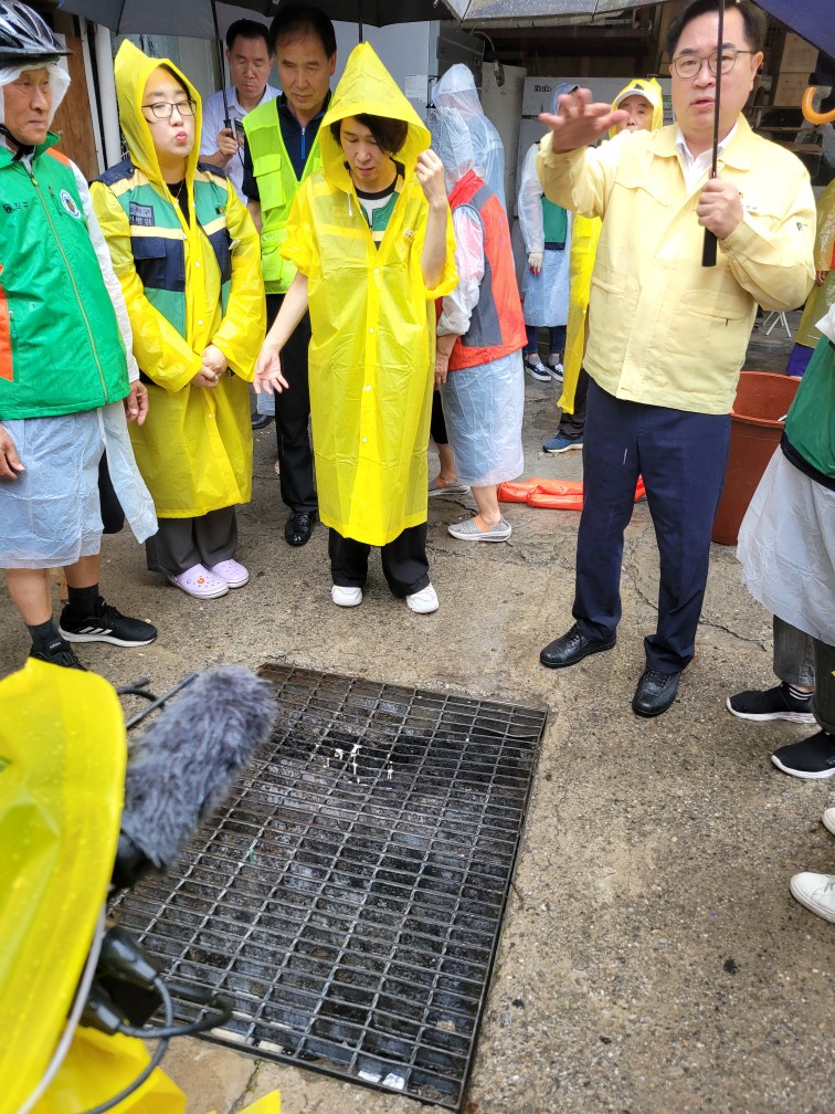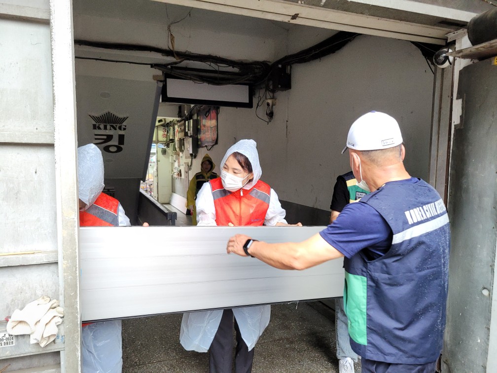 23년 우기대비 수해피해가 없도록 양수기 사용, 빗물받이 덮개 제거, 차수판 설치 등 직능단체 및 주민들과 훈련을 실시하였습니다.