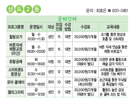 2022년 3기 상도2동 자치회관 프로그램 개강