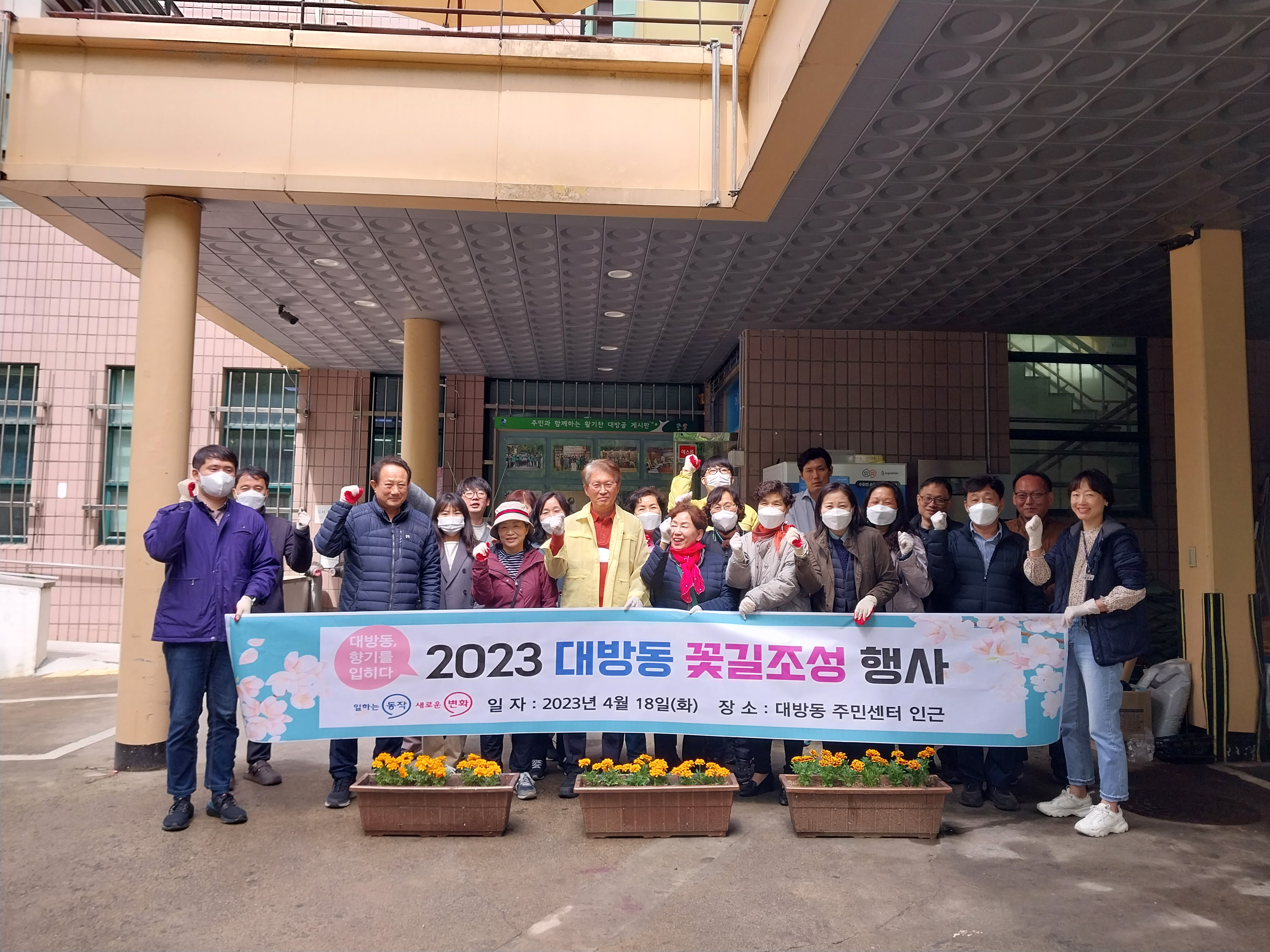 대방동 주민센터 인근(마을버스 정류장 부근)에 비치된 기존화분에 베고니아 금잔화 등 꽃묘 600여개를 식재하였습니다.