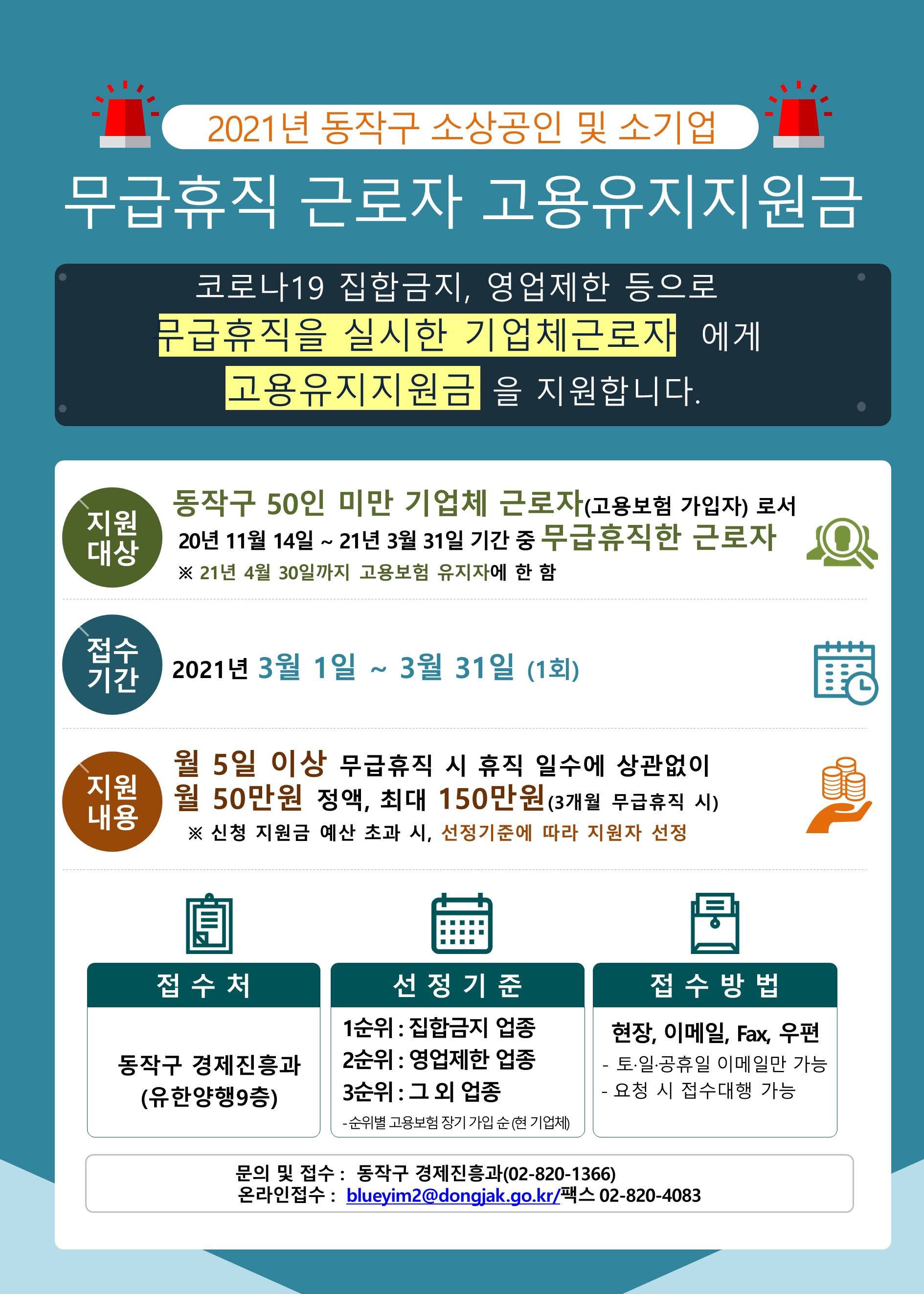 동작구 관내 50인 미만 기업체 소속 무급휴직 근로자 고용유지지원금 신청 안내